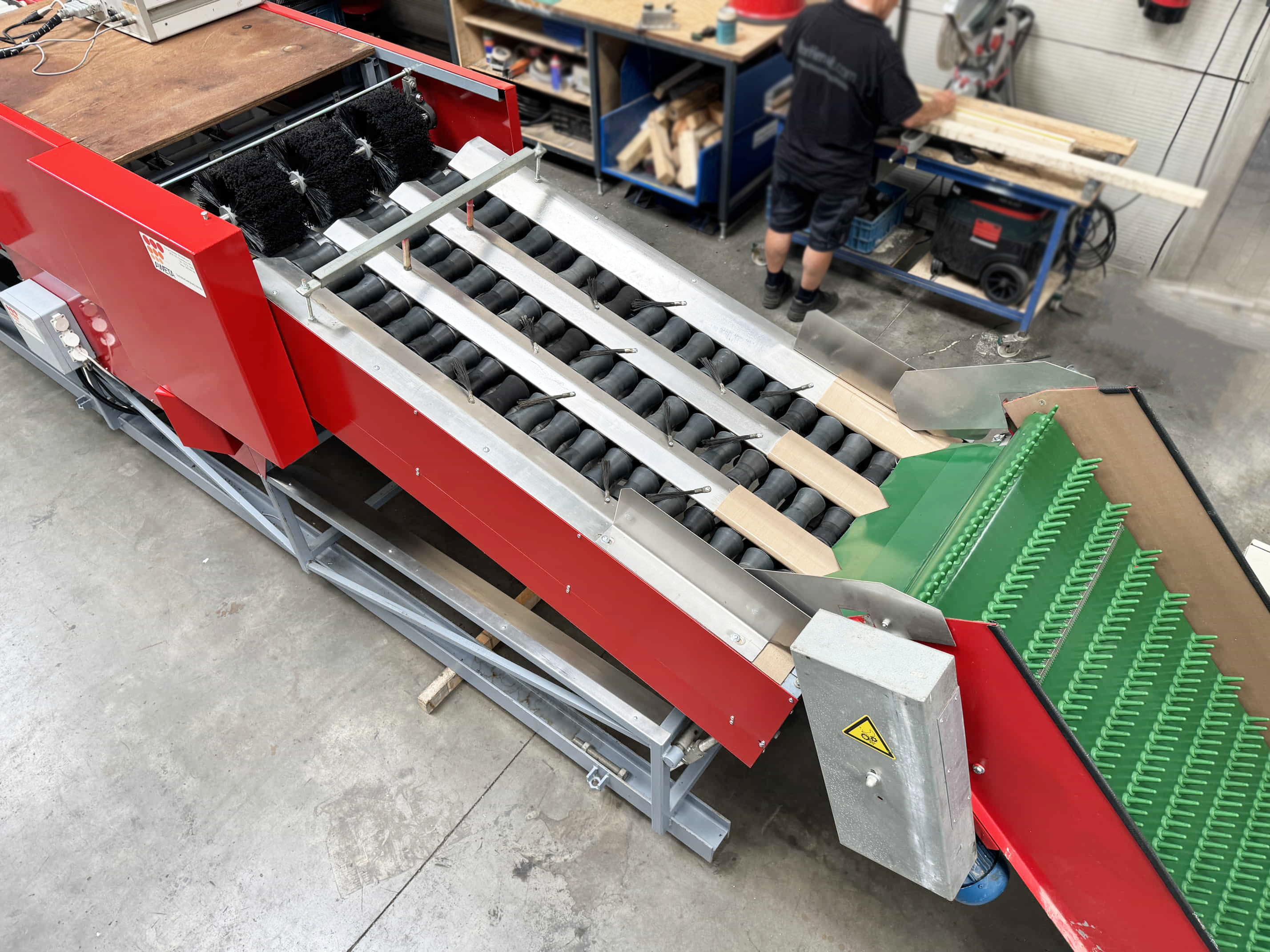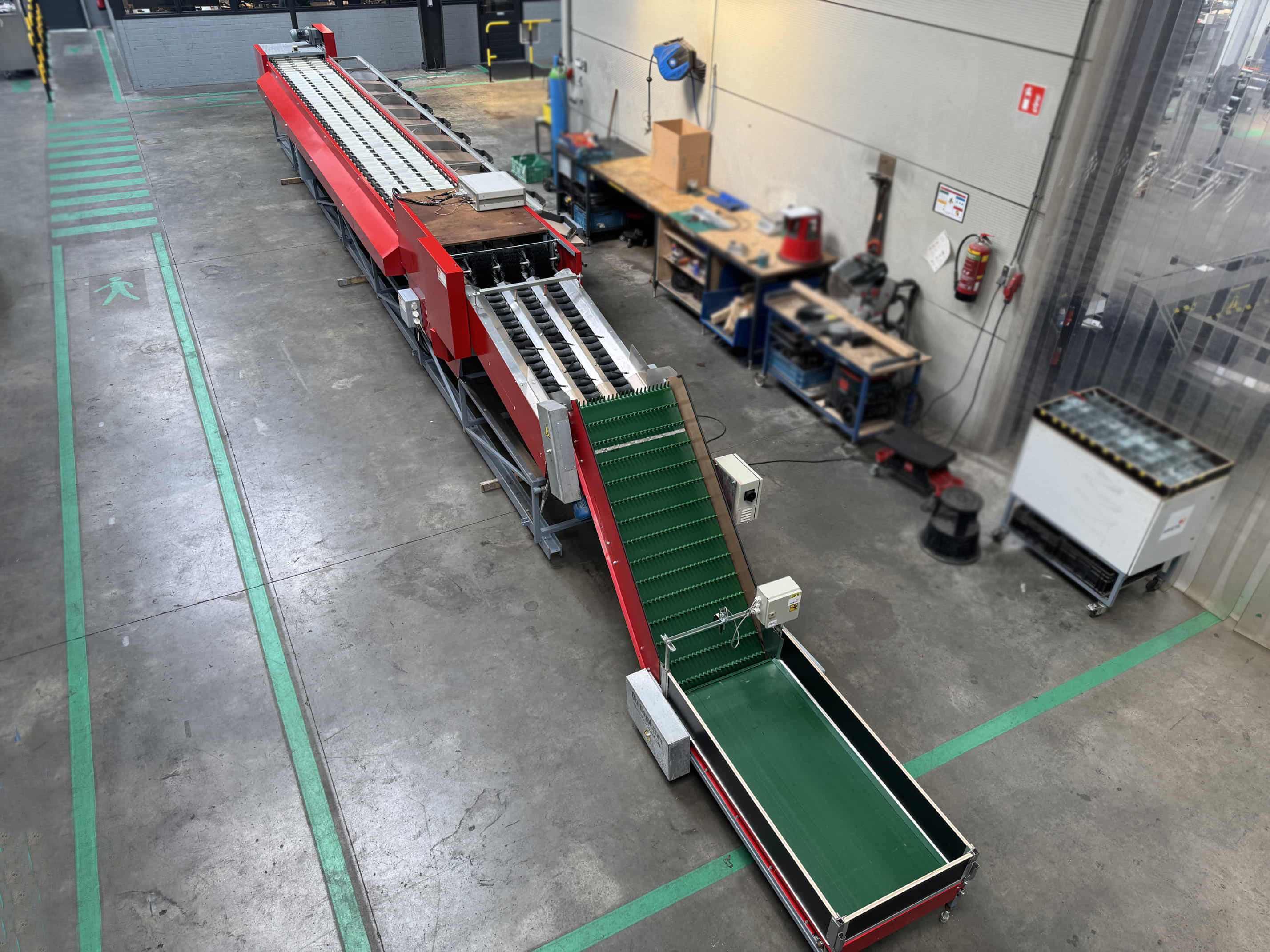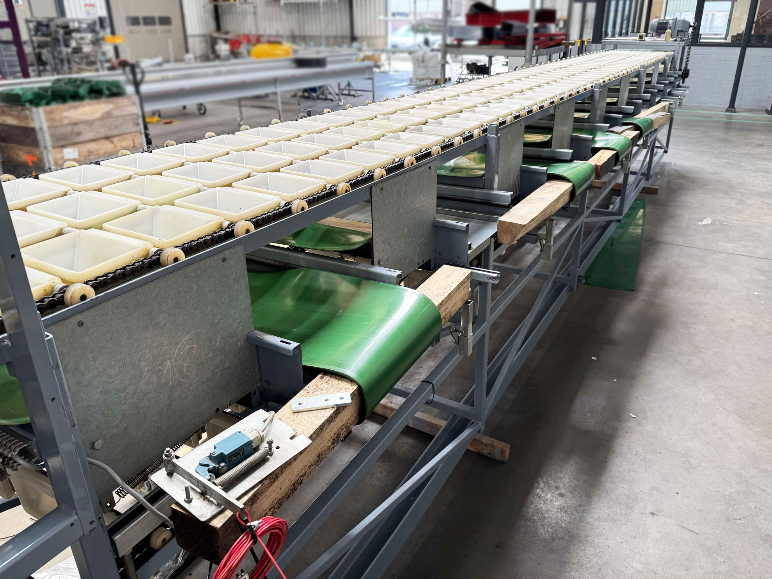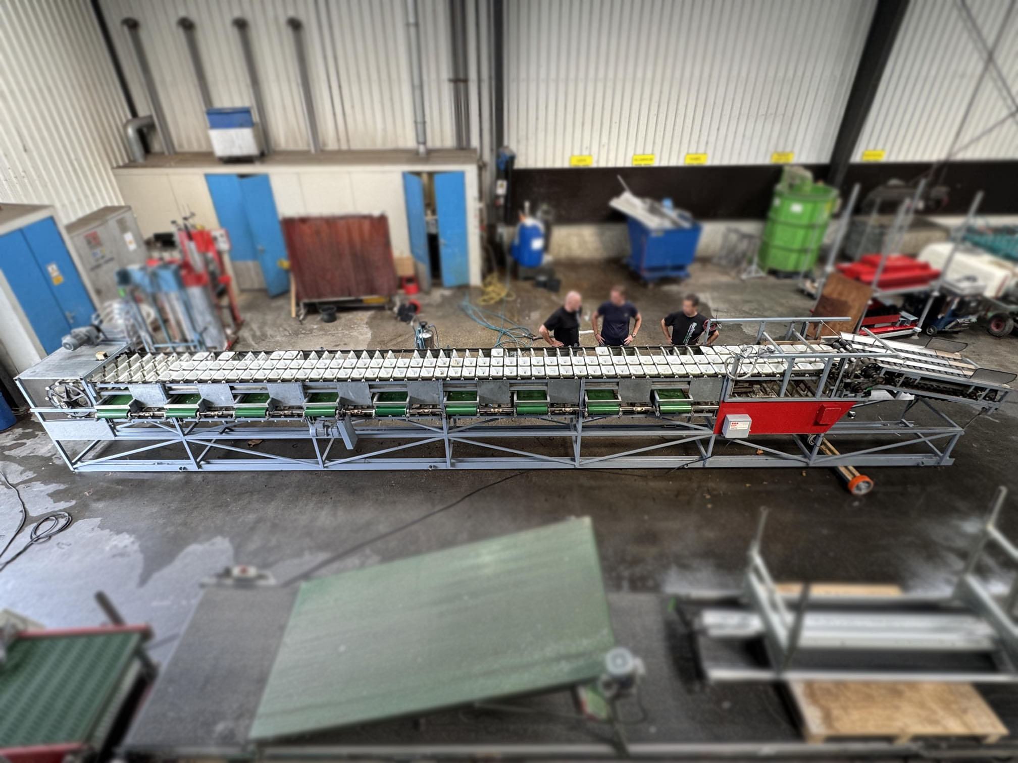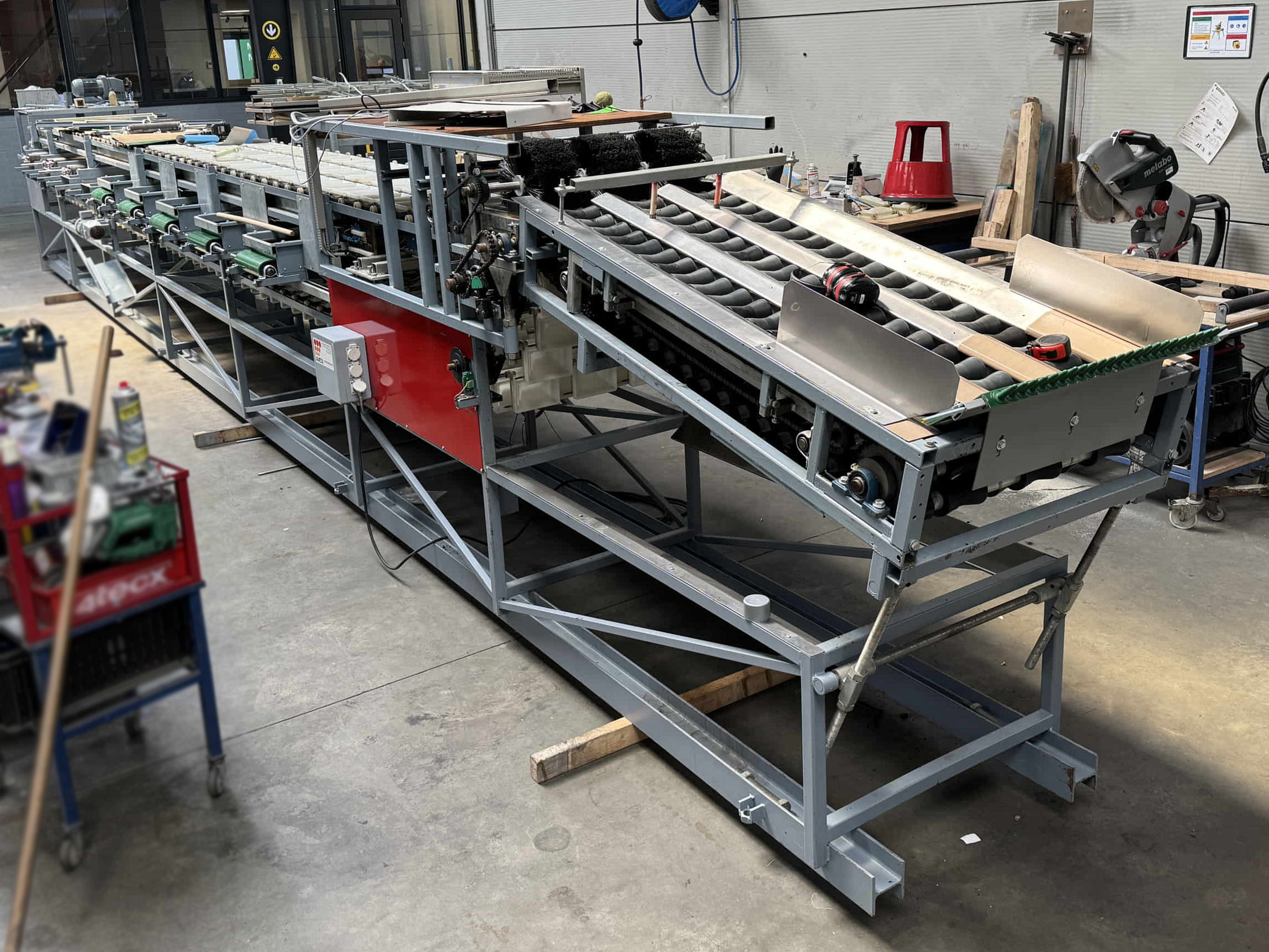 Diese Aweta-Sortiermaschine wurde von uns für einen Kunden in den Vereinigten Staaten komplett überholt. Die Maschine wurde gründlich gereinigt, wo nötig neu lackiert/gestrichen und mit neuen Teilen ausgestattet. Nach der Überholung wurde die Maschine ausgiebig mit dem Produkt des Kunden getestet. Außerdem wurde die Sortiermaschine mit einem Bunkerband, einem Förderband und digitalen Waagen an den Ausgängen der Maschine ausgestattet.