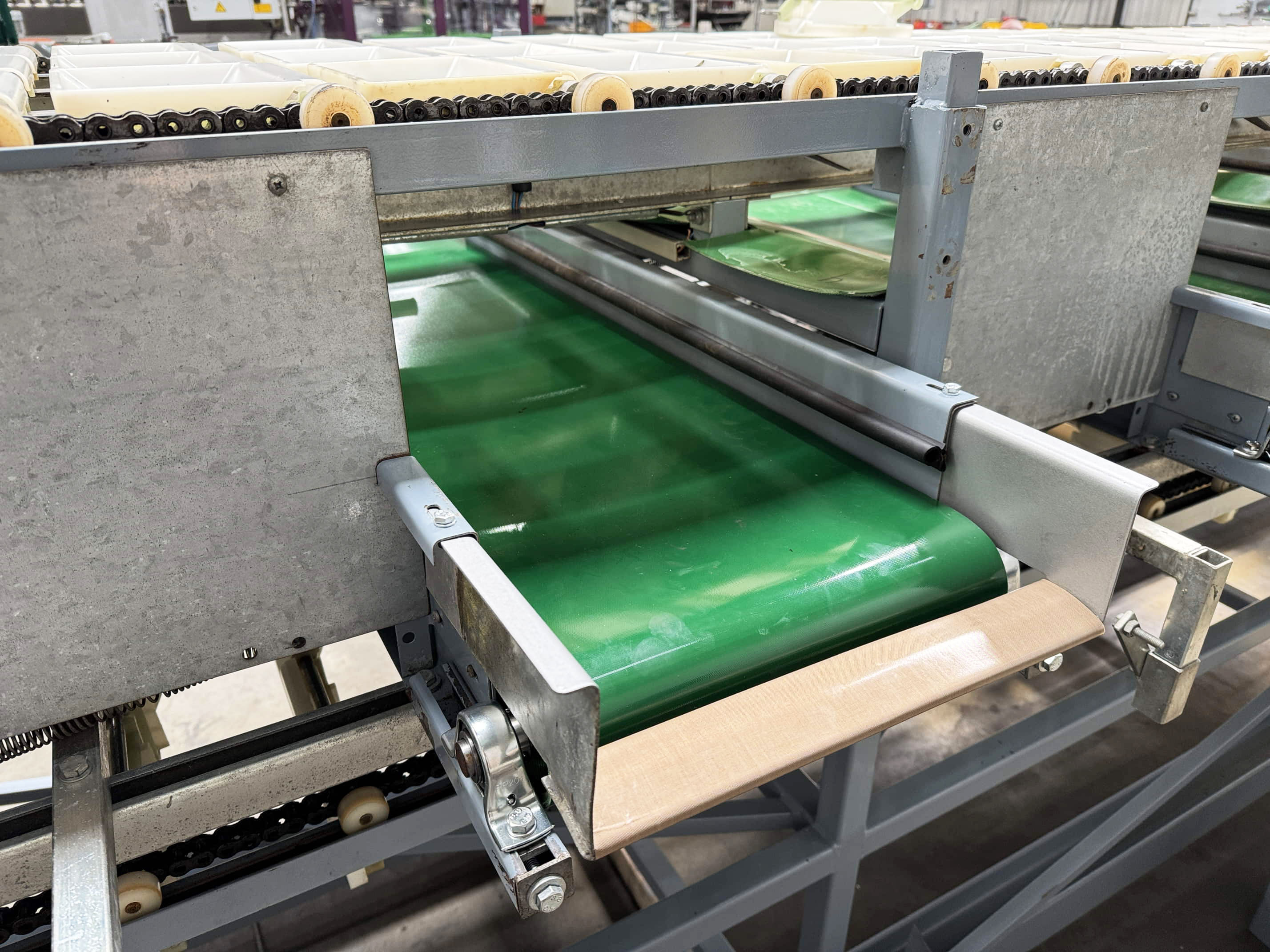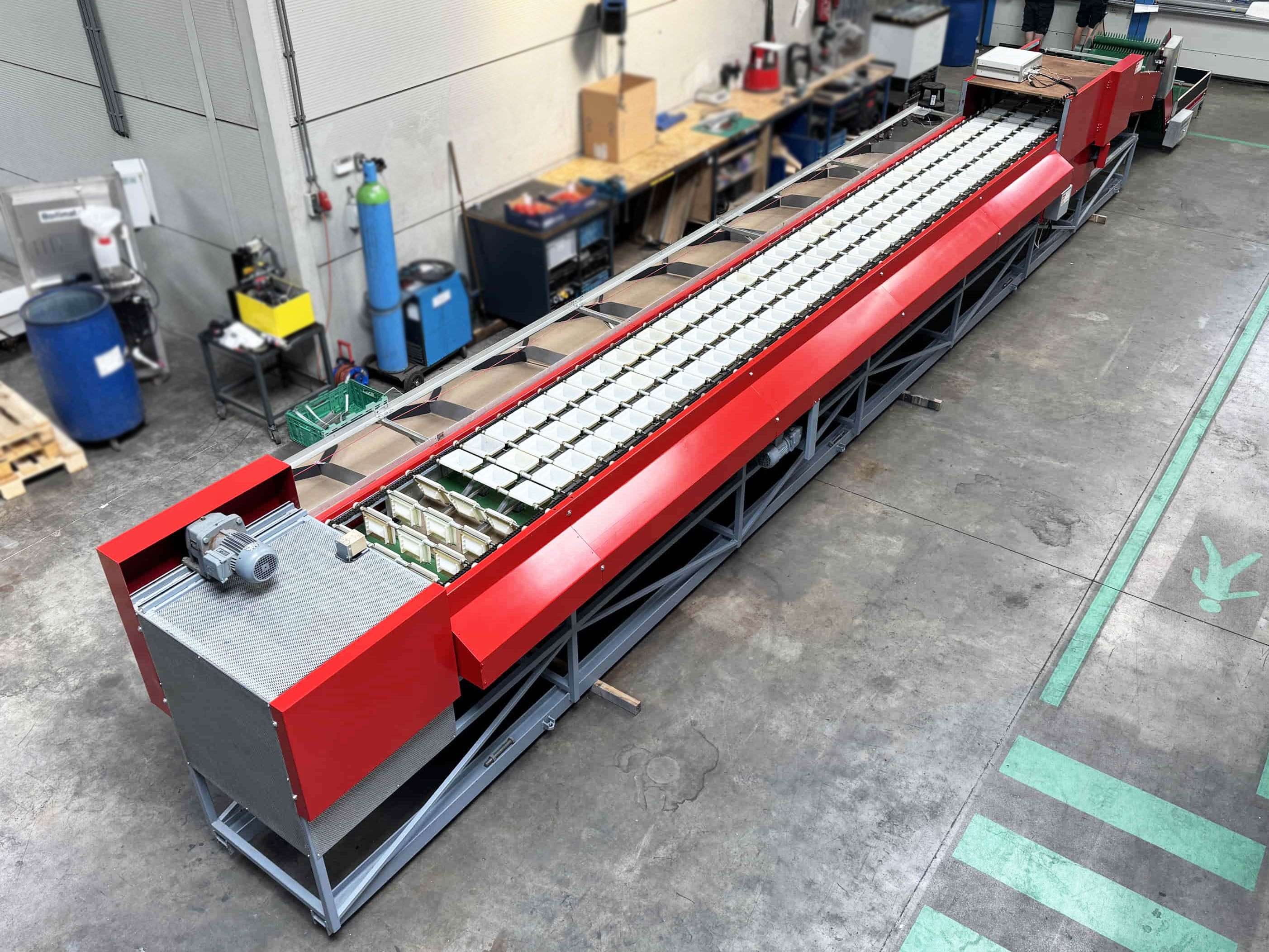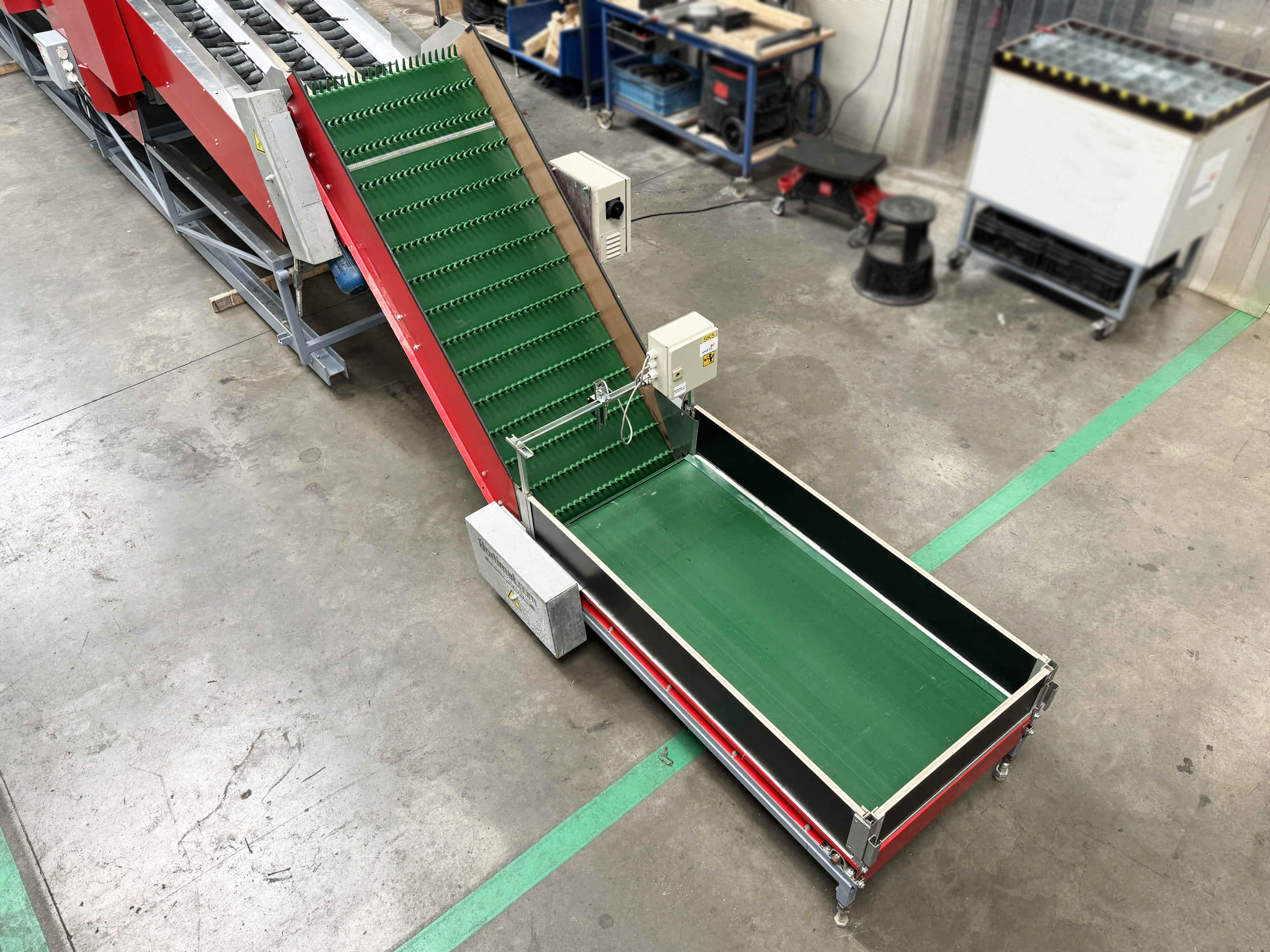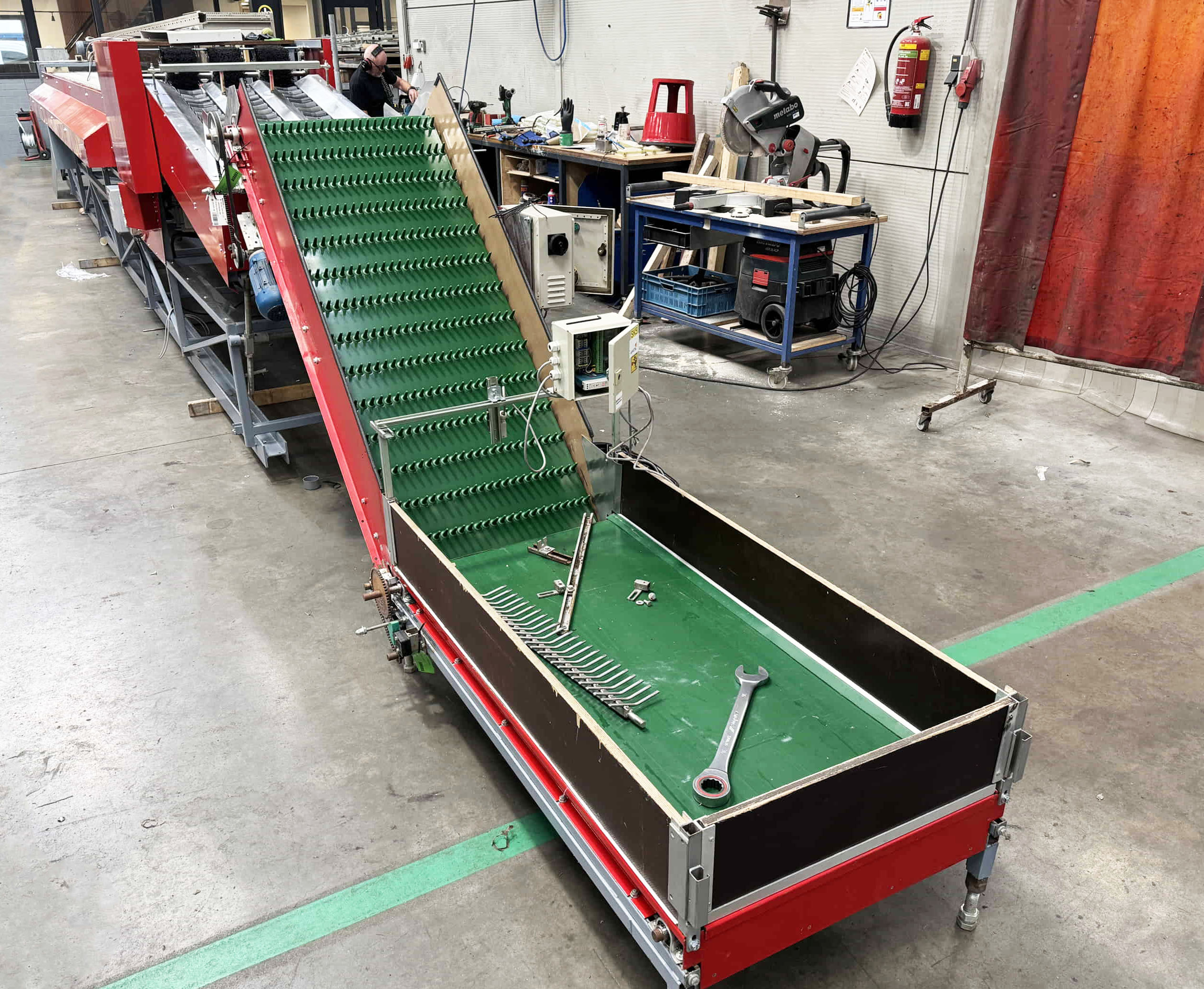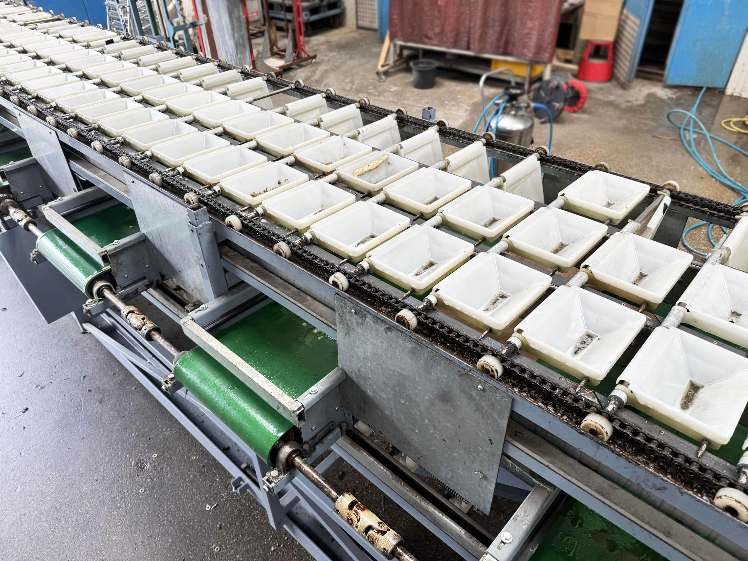 Diese Aweta-Sortiermaschine wurde von uns für einen Kunden in den Vereinigten Staaten komplett überholt. Die Maschine wurde gründlich gereinigt, wo nötig neu lackiert/gestrichen und mit neuen Teilen ausgestattet. Nach der Überholung wurde die Maschine ausgiebig mit dem Produkt des Kunden getestet. Außerdem wurde die Sortiermaschine mit einem Bunkerband, einem Förderband und digitalen Waagen an den Ausgängen der Maschine ausgestattet.