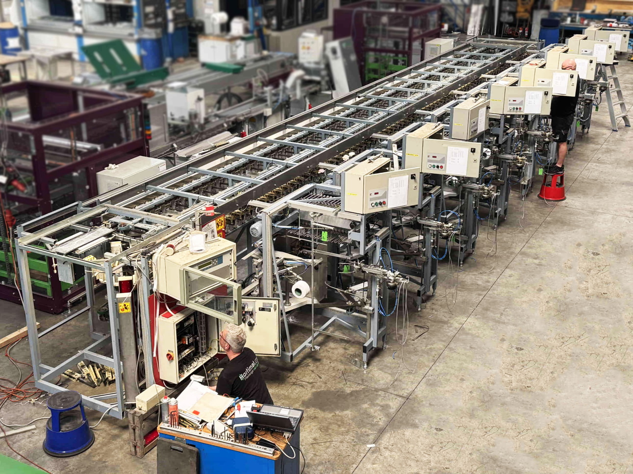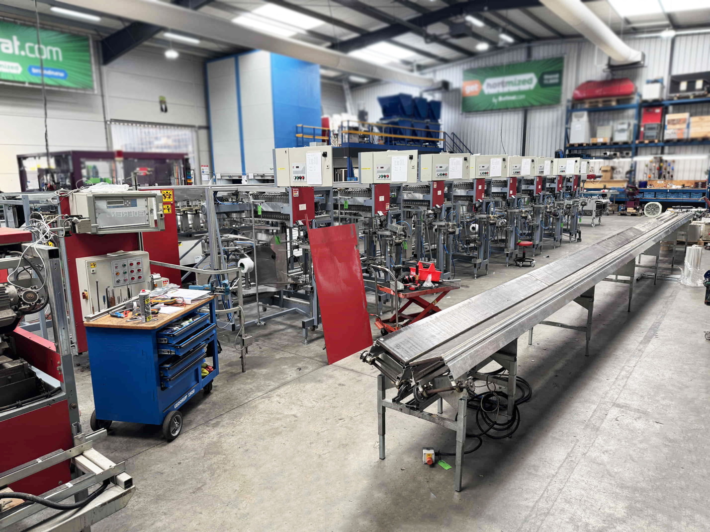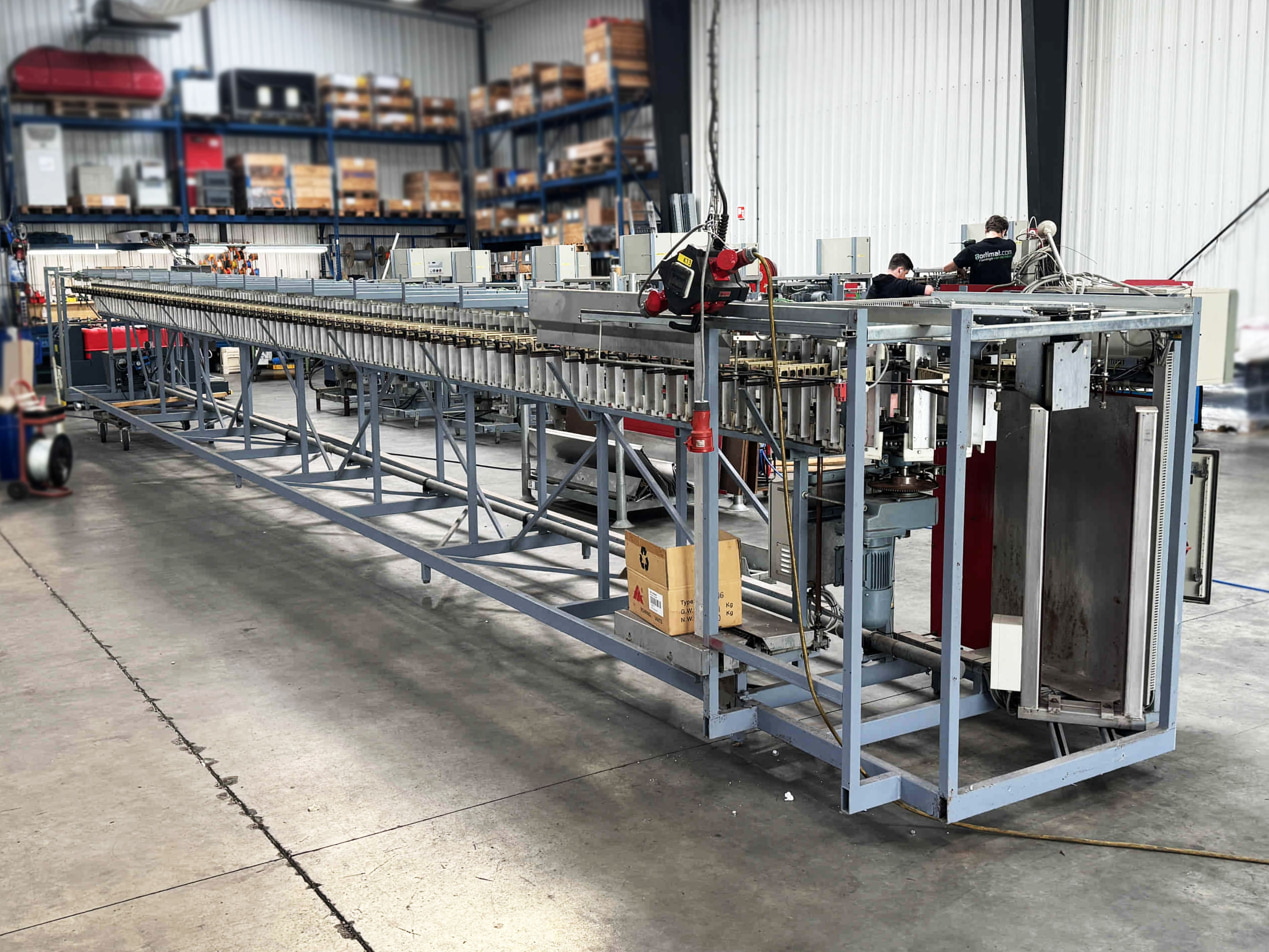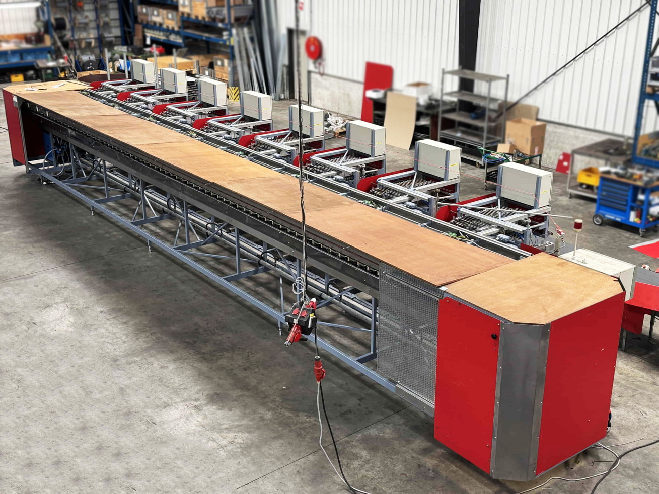 For a customer in Poland, we completely renewed a rose bunching machine, including an RS3A rose sealing machine, and set it up from the ground up, just as it would be installed at the customer's premises. Both machines were thoroughly cleaned, with various parts replaced/renewed, and several components repainted/sprayed. Finally, the entire installation was extensively tested to ensure reliable and optimal operation.
