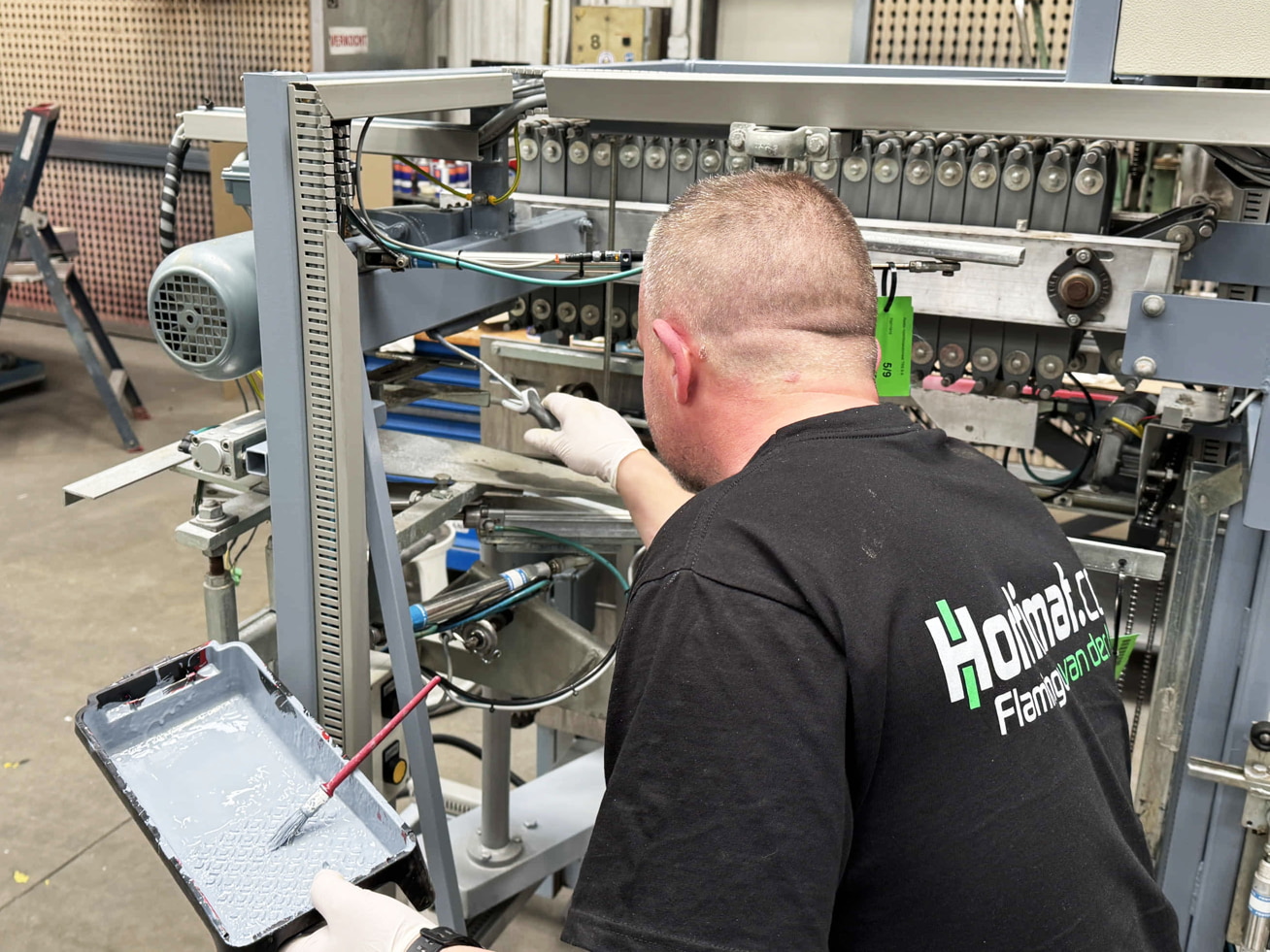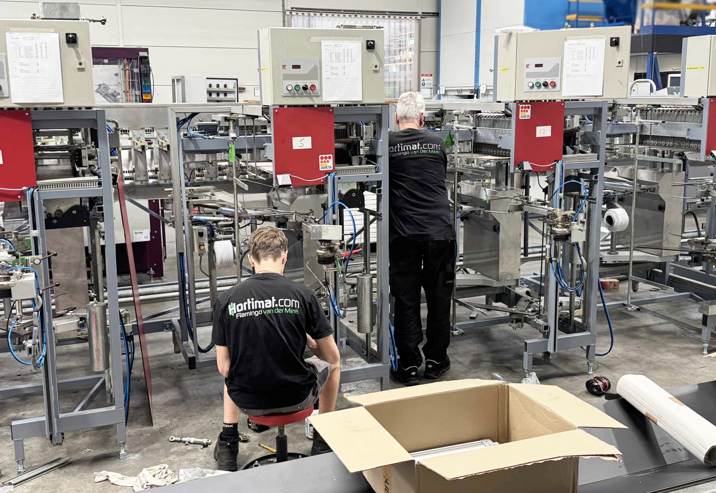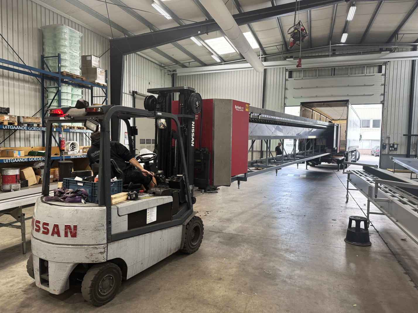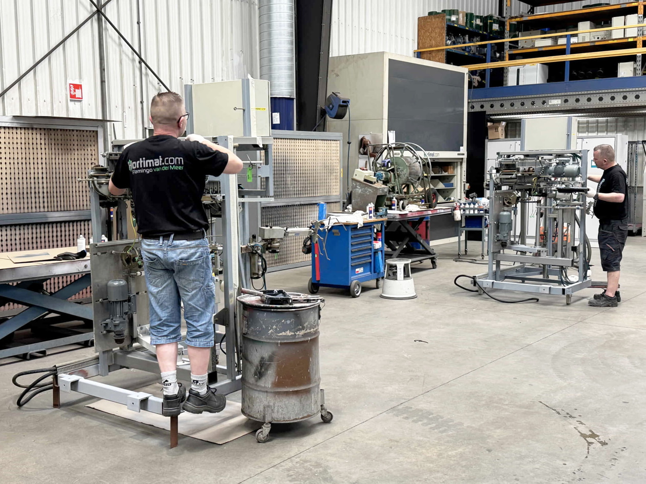 For a customer in Poland, we completely renewed a rose bunching machine, including an RS3A rose sealing machine, and set it up from the ground up, just as it would be installed at the customer's premises. Both machines were thoroughly cleaned, with various parts replaced/renewed, and several components repainted/sprayed. Finally, the entire installation was extensively tested to ensure reliable and optimal operation.