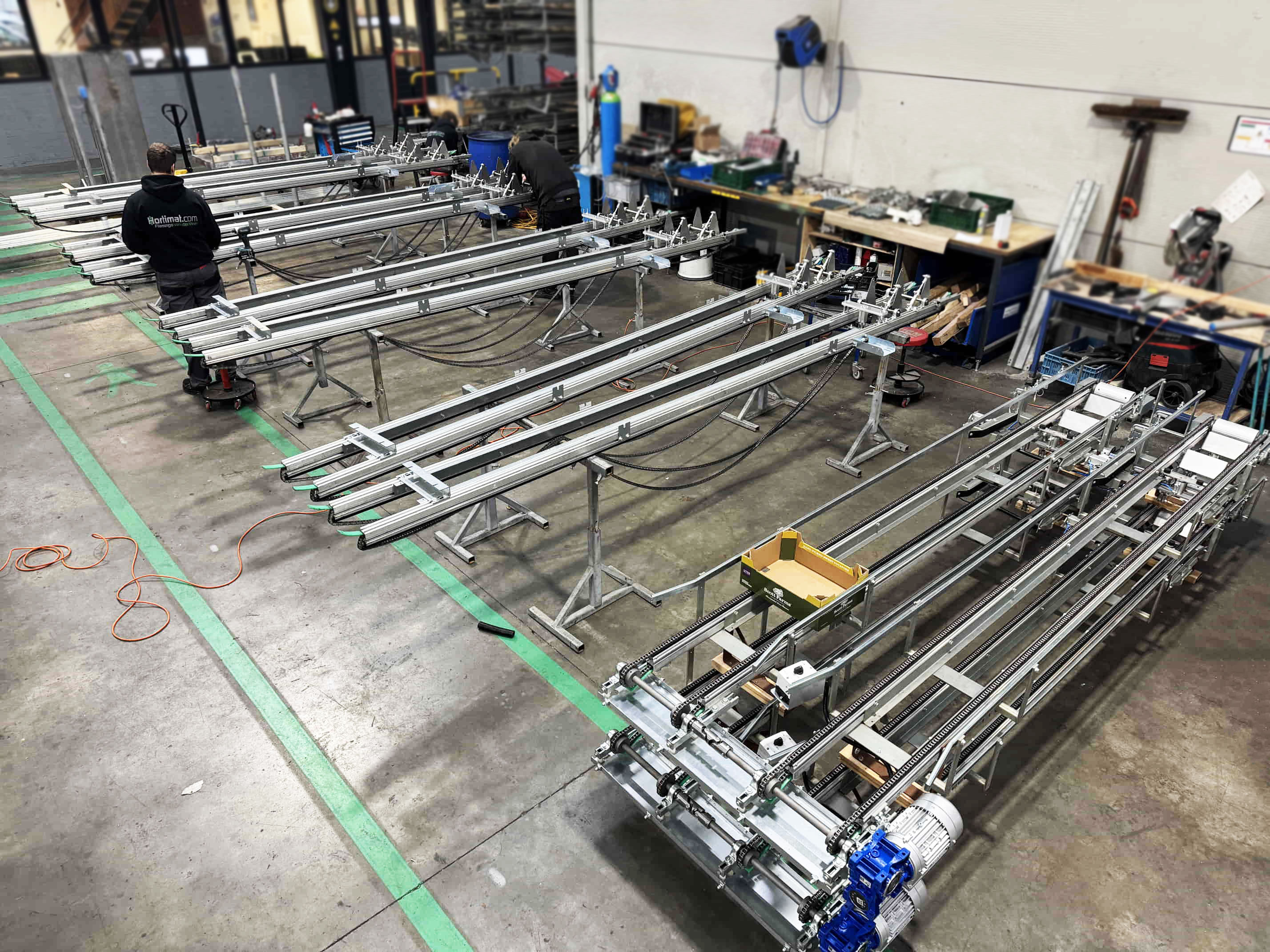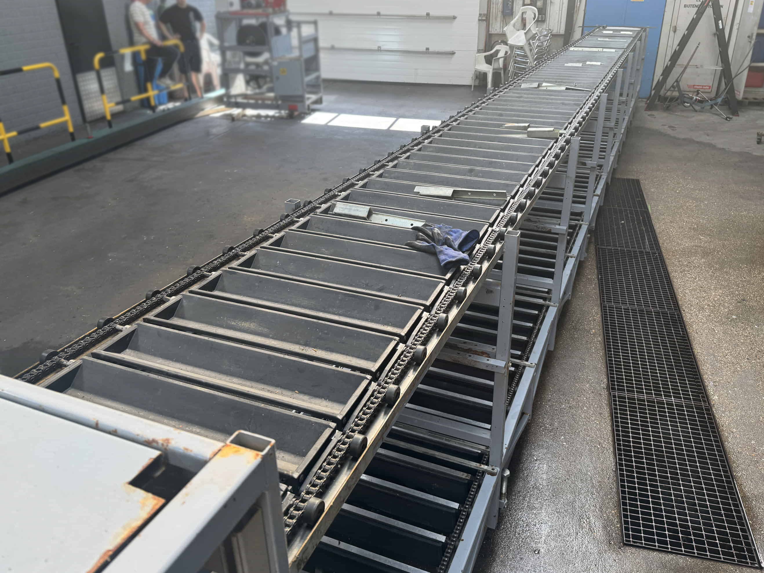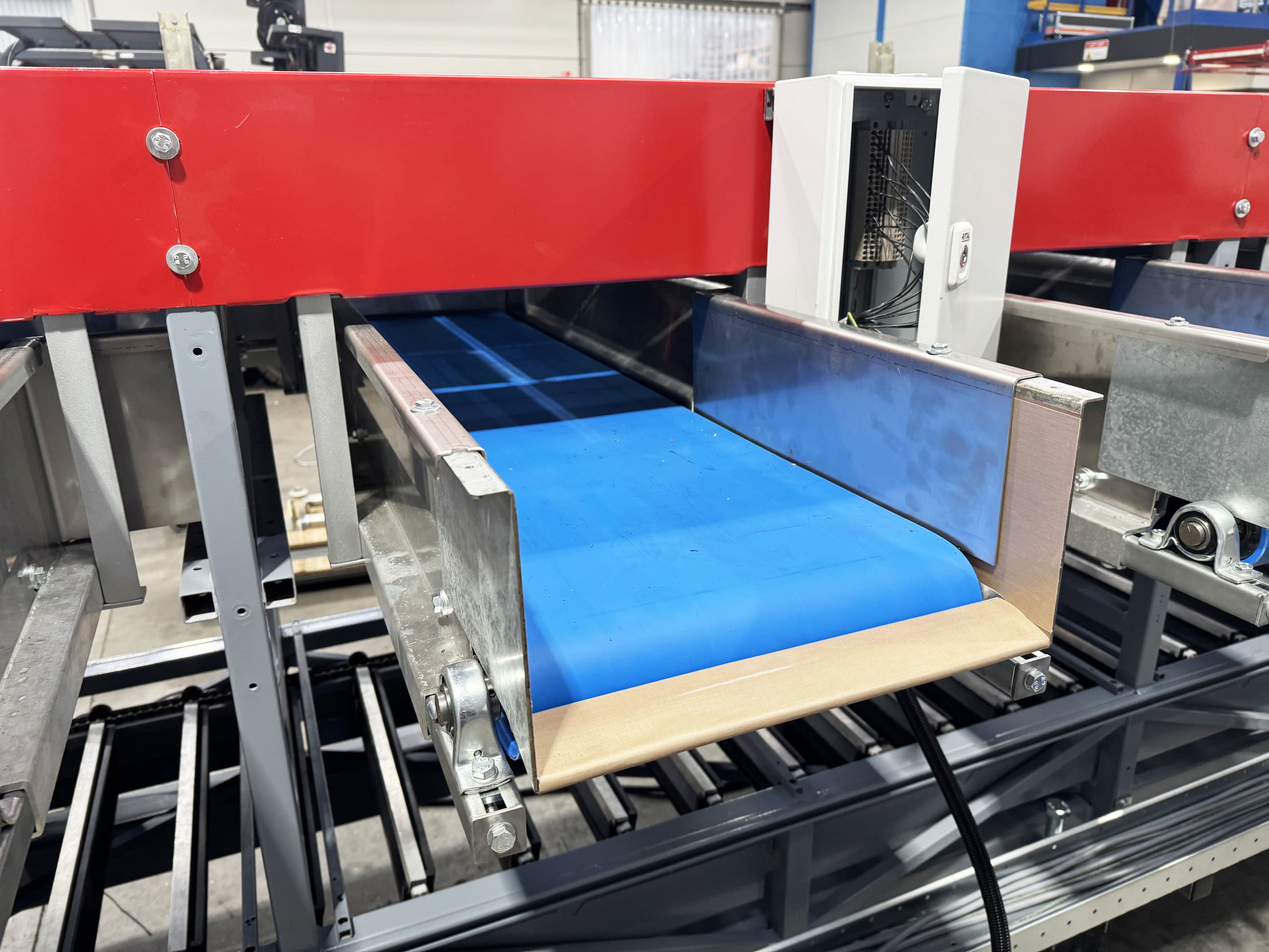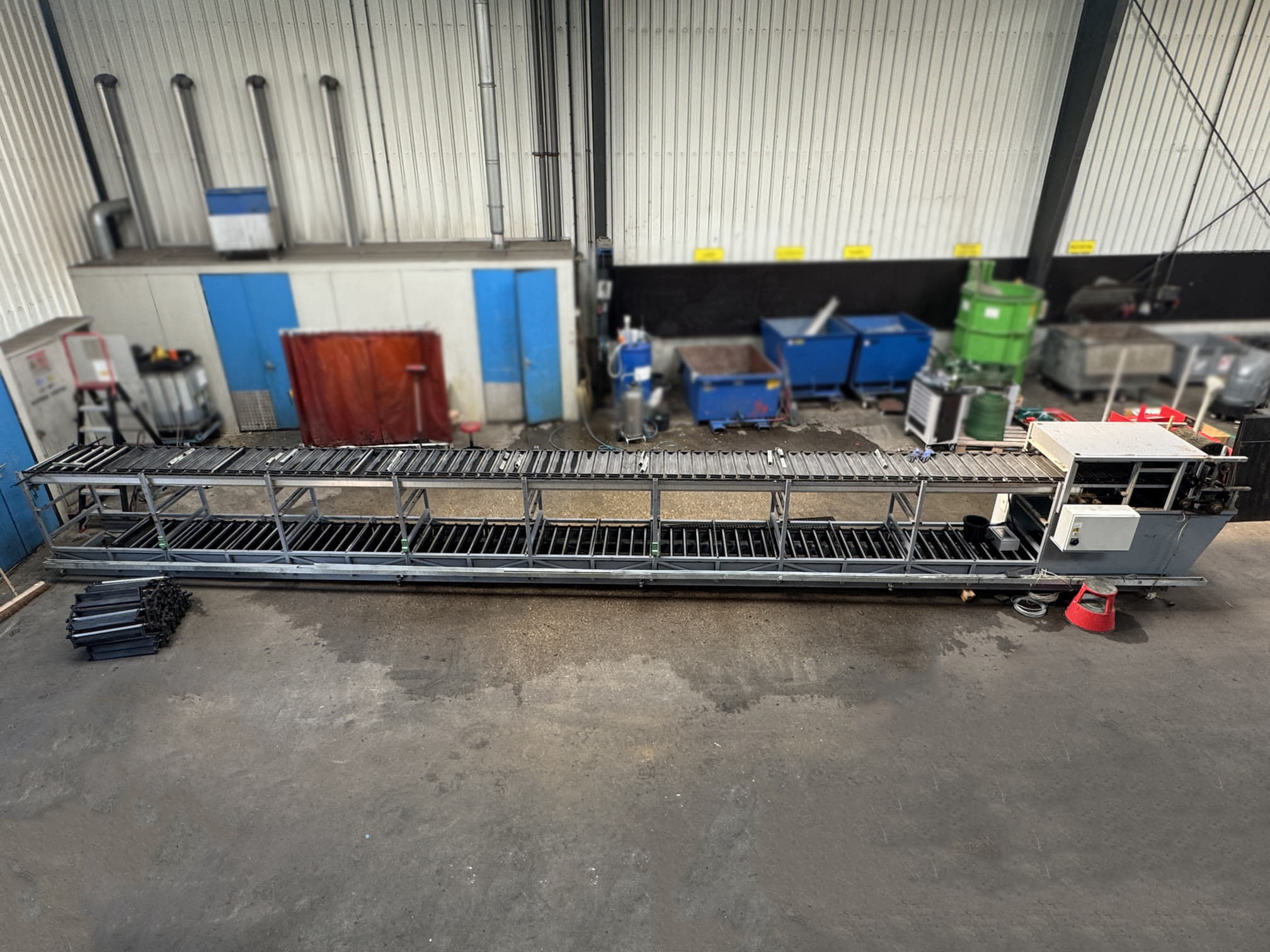 Para este proyecto, se revisó por completo una clasificadora de pepinos existente y se convirtió en una clasificadora de boniato para un cliente en Portugal. La máquina se equipó con una correa trapezoidal, un transportador de entrada y salidas automatizadas mediante transportadores de cadena y transportadores de rodillos de descarga.