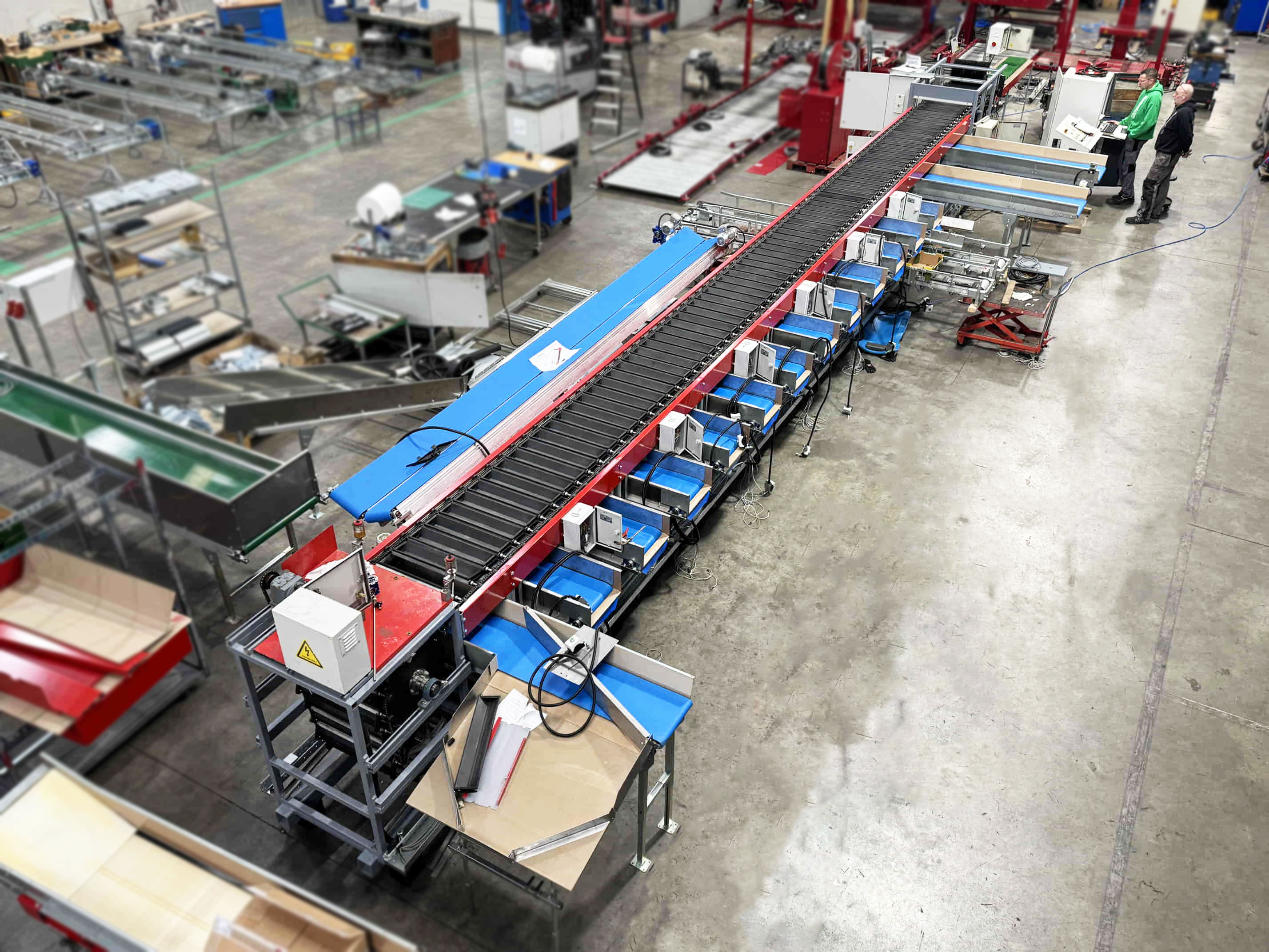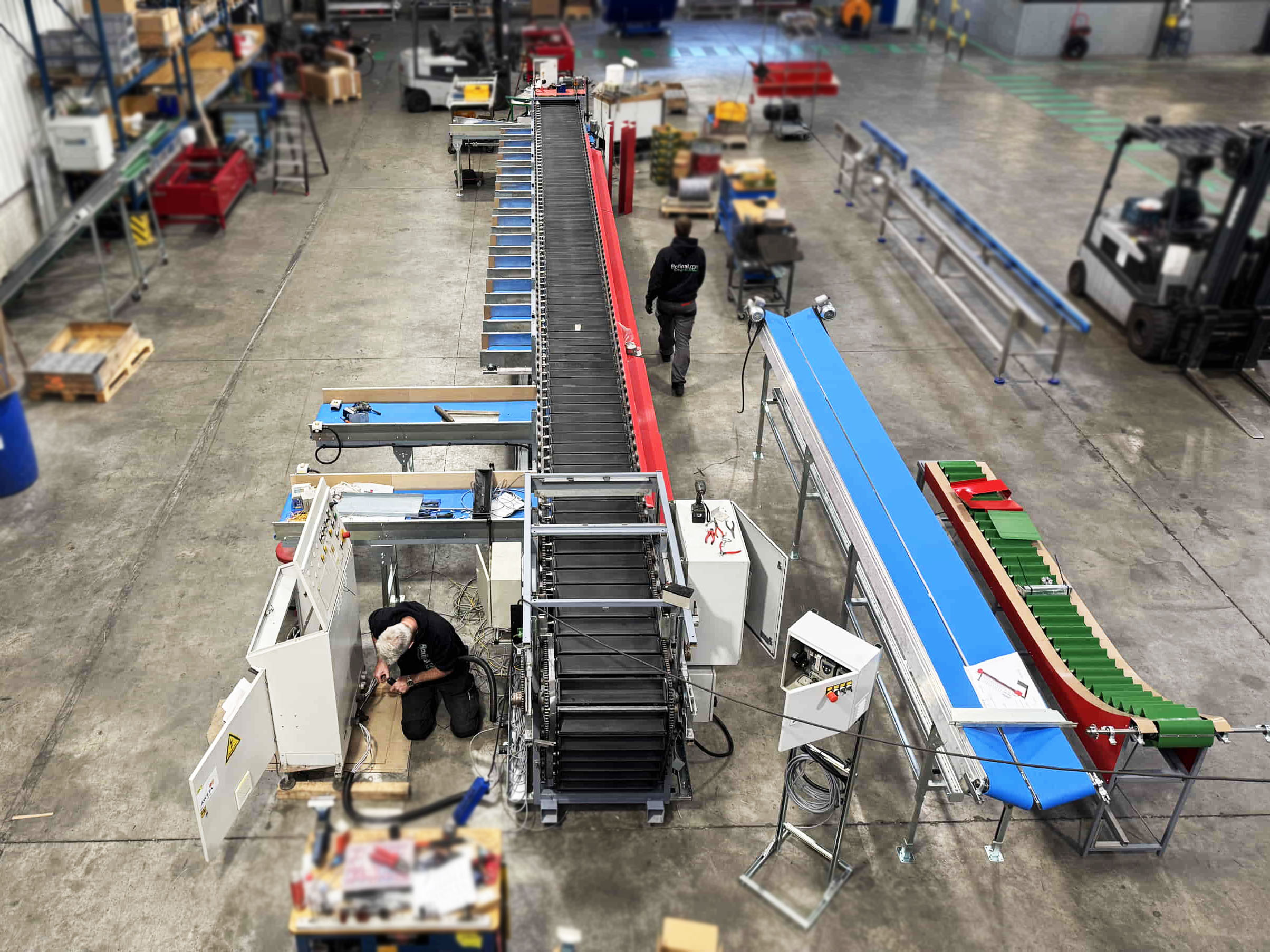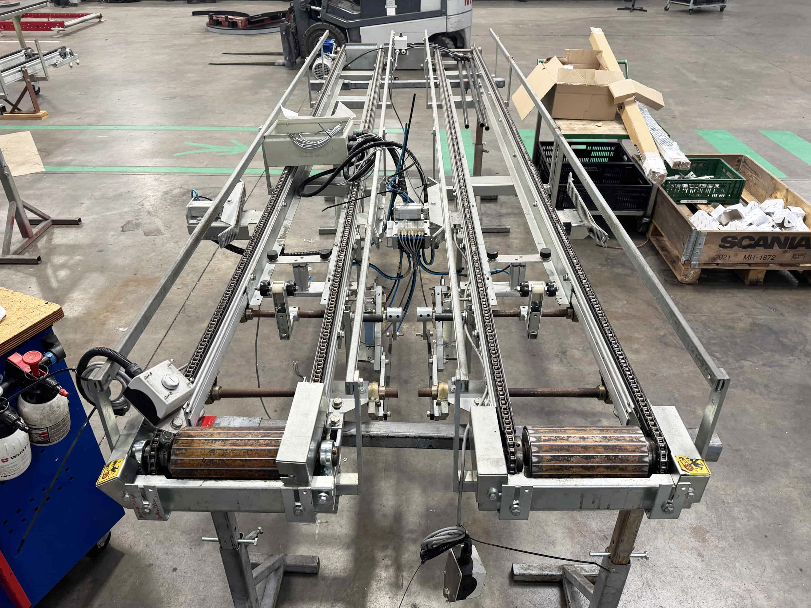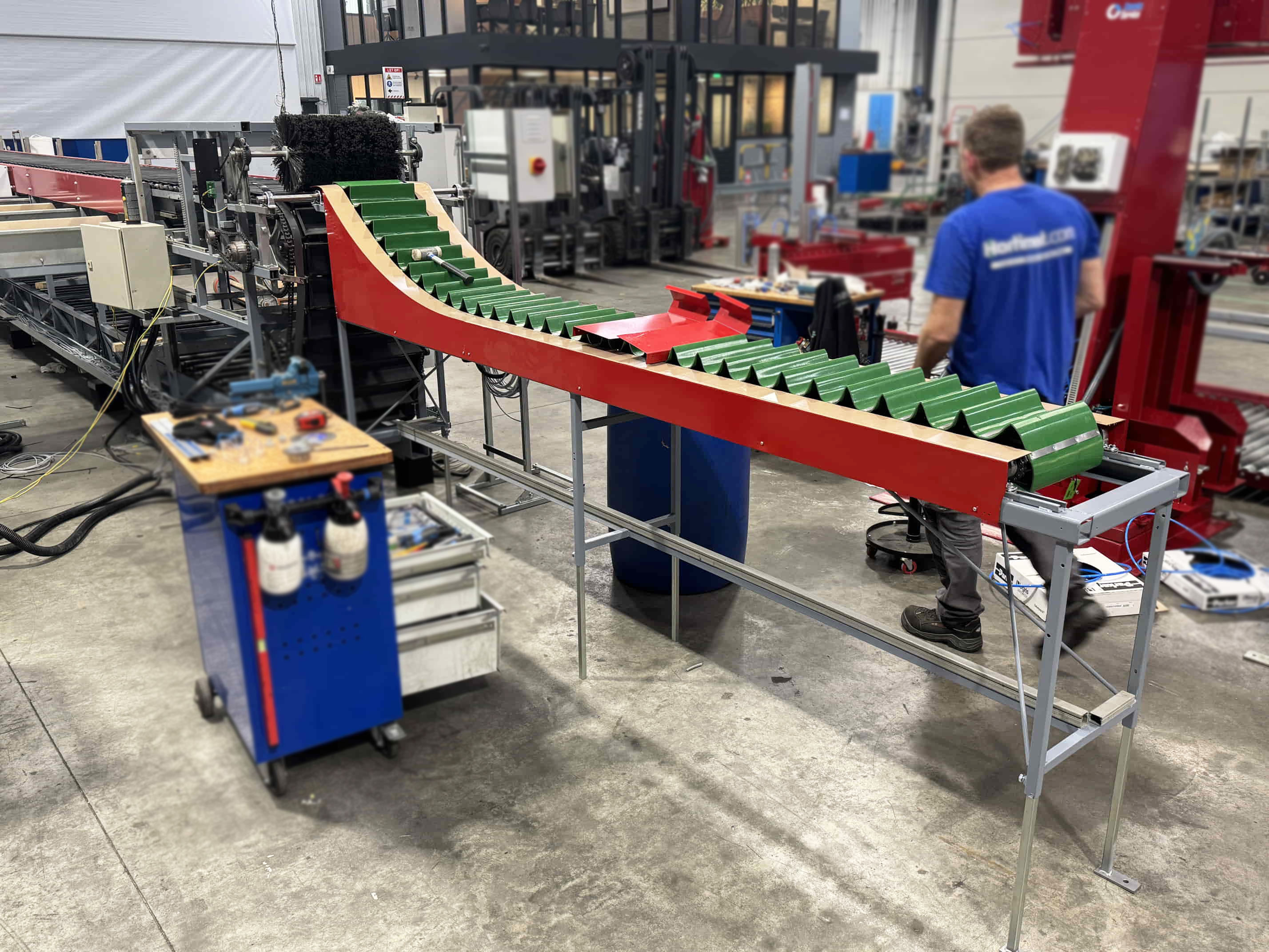 Para este proyecto, se revisó por completo una clasificadora de pepinos existente y se convirtió en una clasificadora de boniato para un cliente en Portugal. La máquina se equipó con una correa trapezoidal, un transportador de entrada y salidas automatizadas mediante transportadores de cadena y transportadores de rodillos de descarga.
