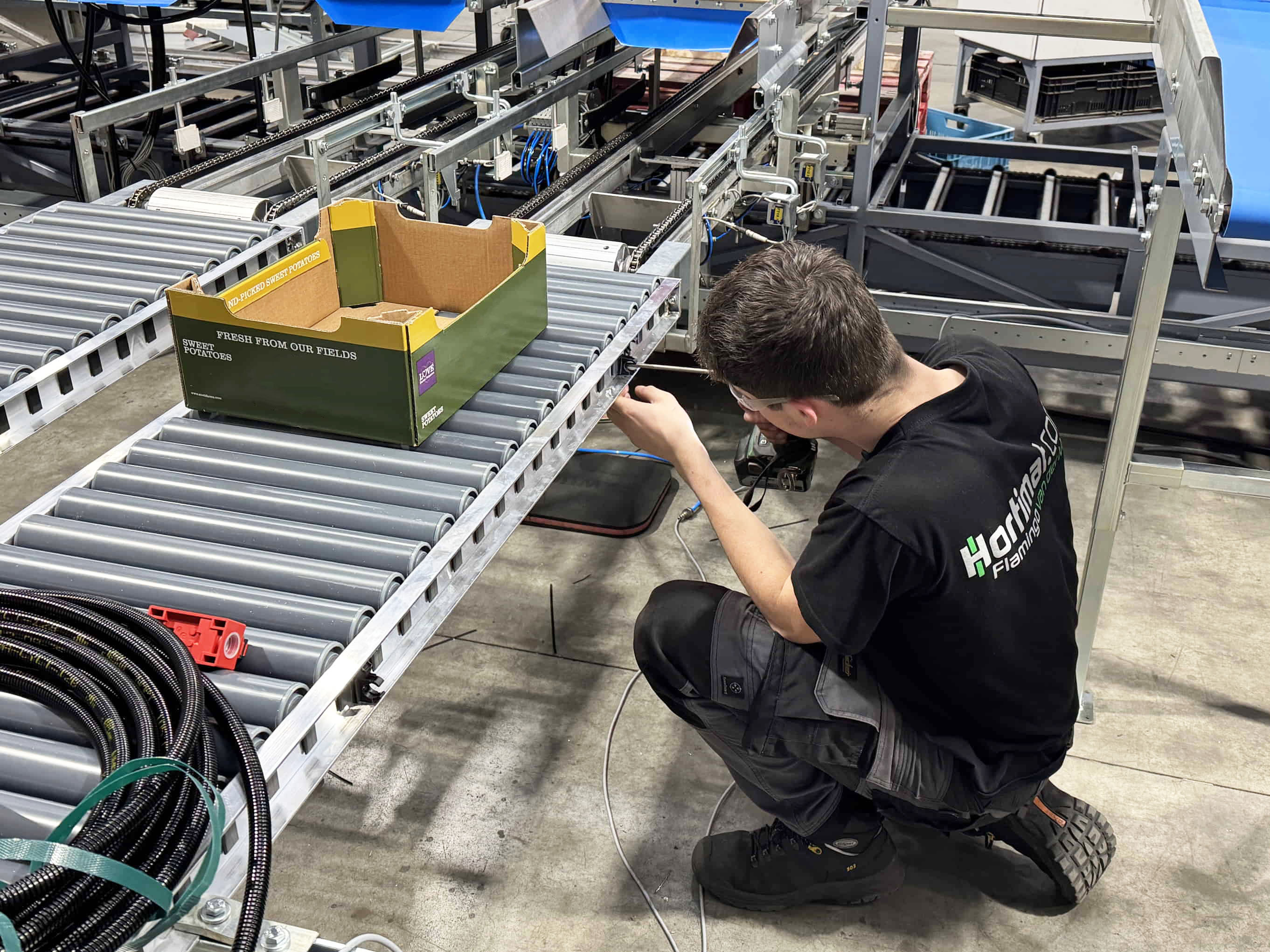 Revisión completa y conversión a una máquina clasificadora de batatas para un cliente en Portugal