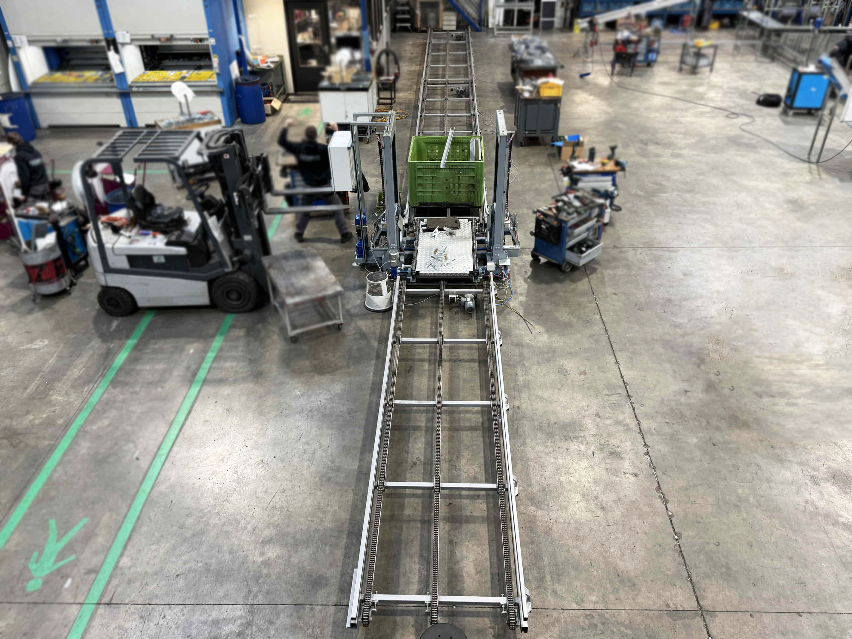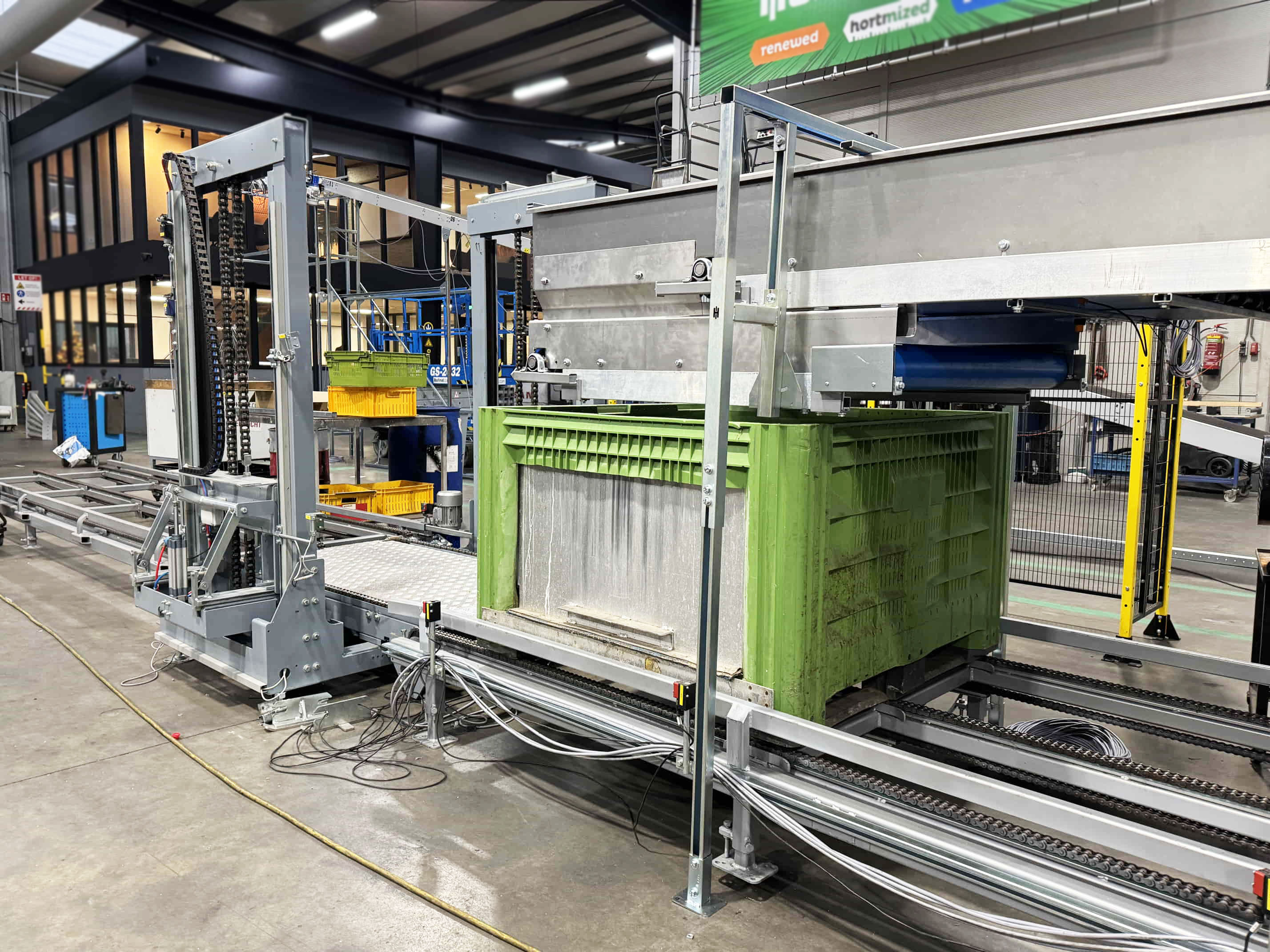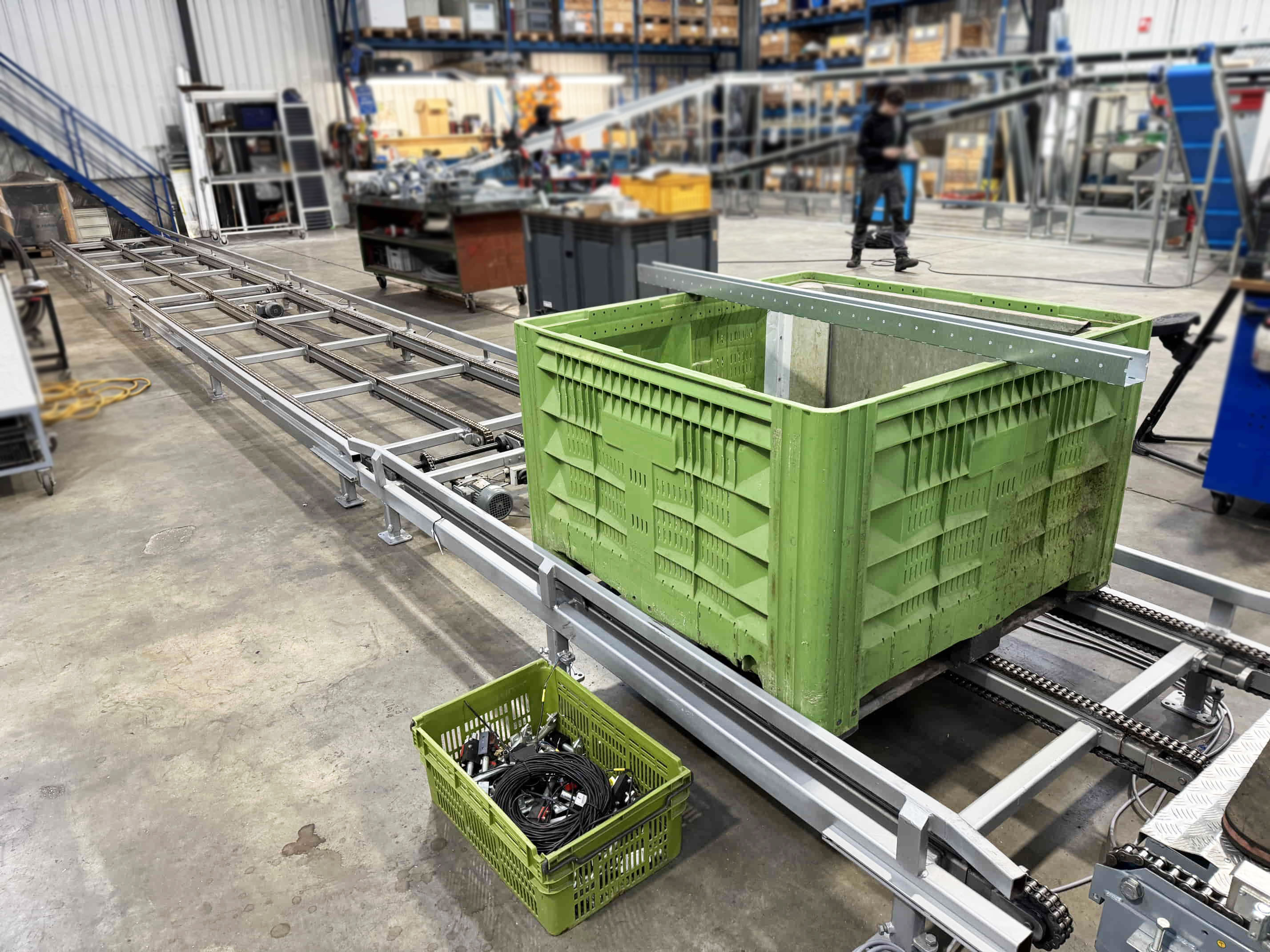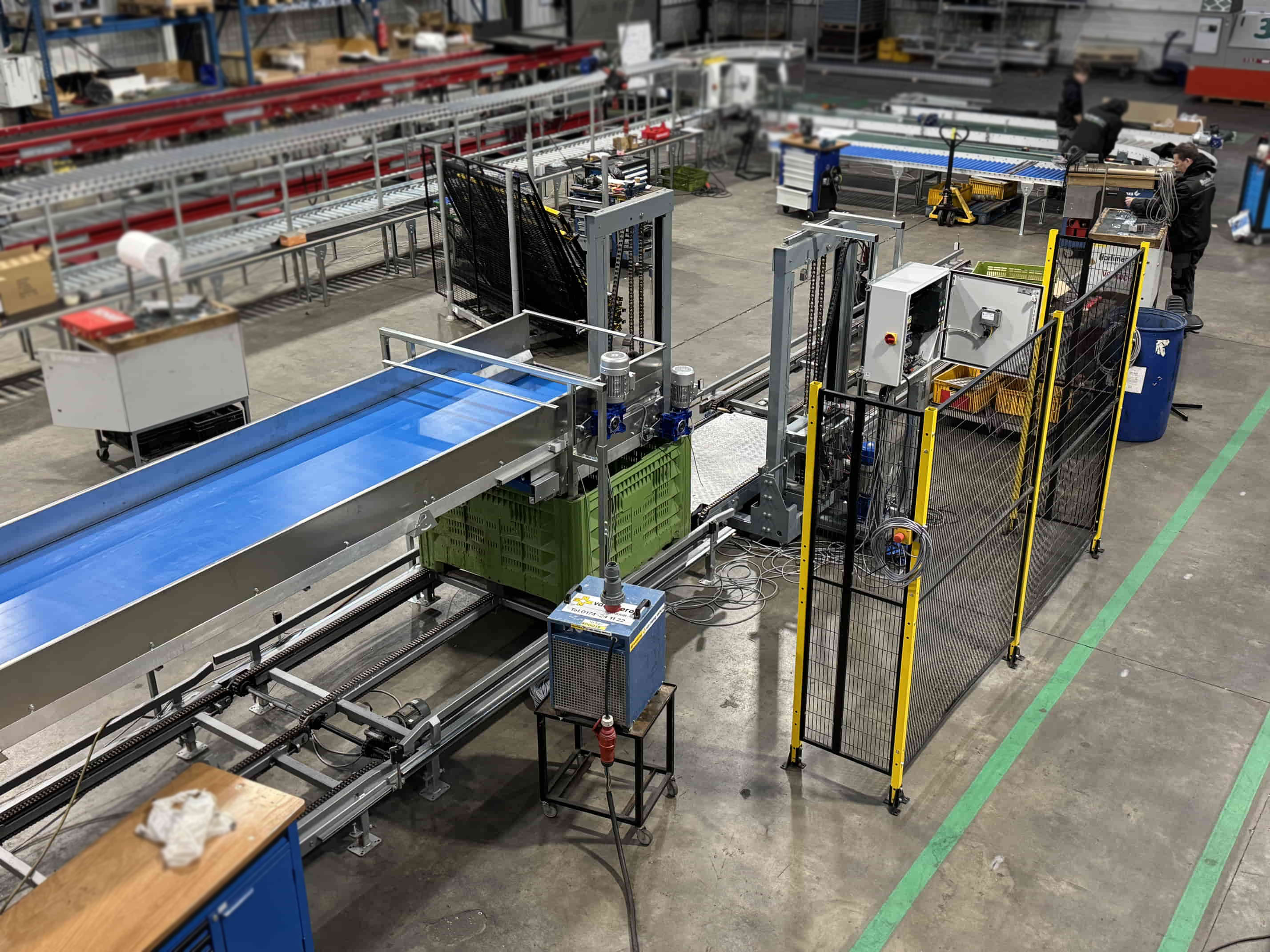 Volledig geautomatiseerd kistenvulsysteem gerealiseerd voor een klant in Nederland