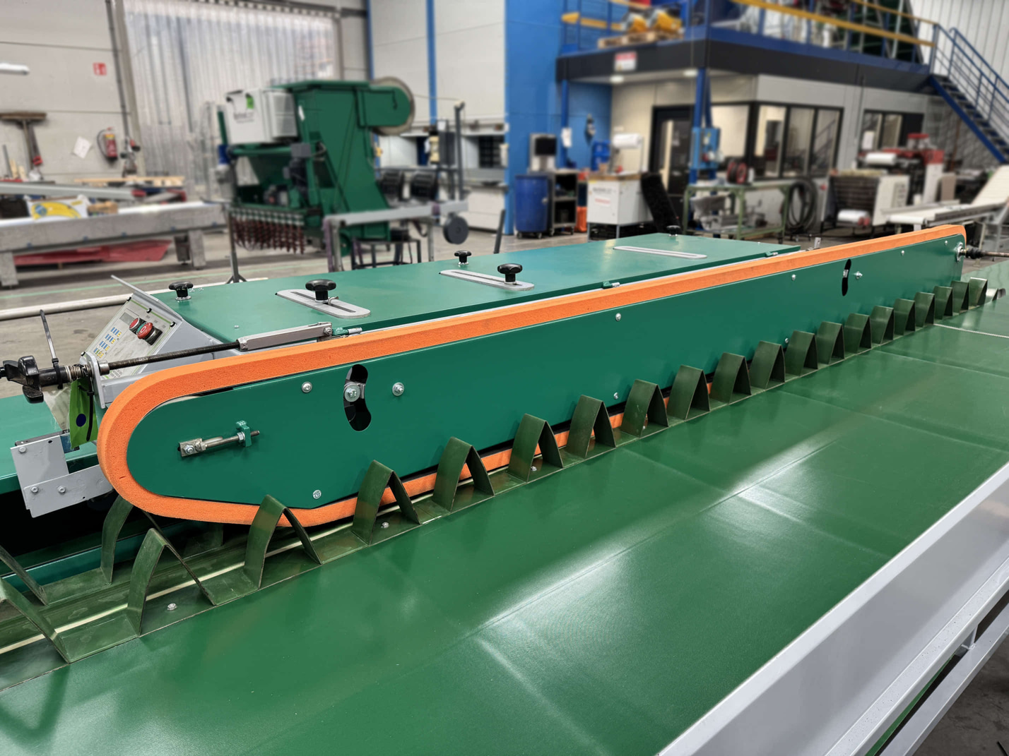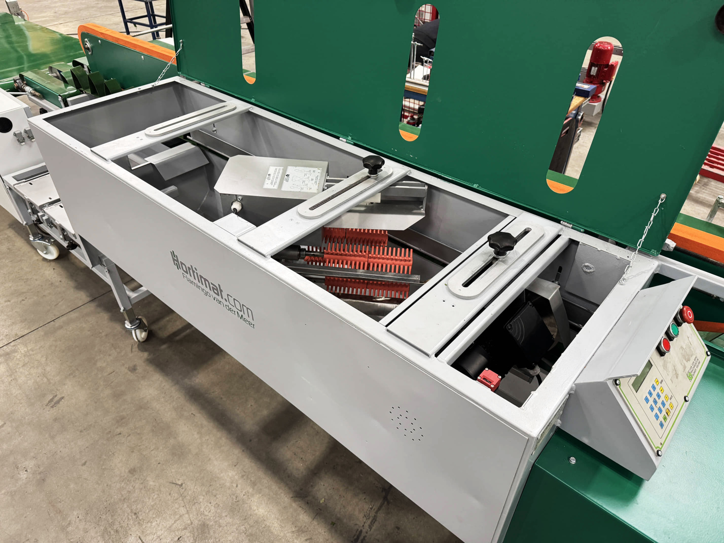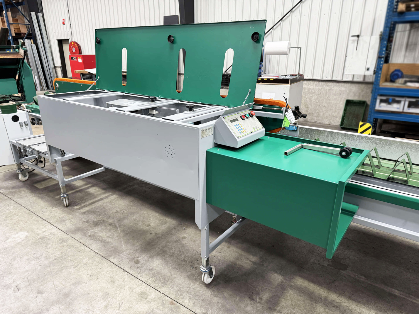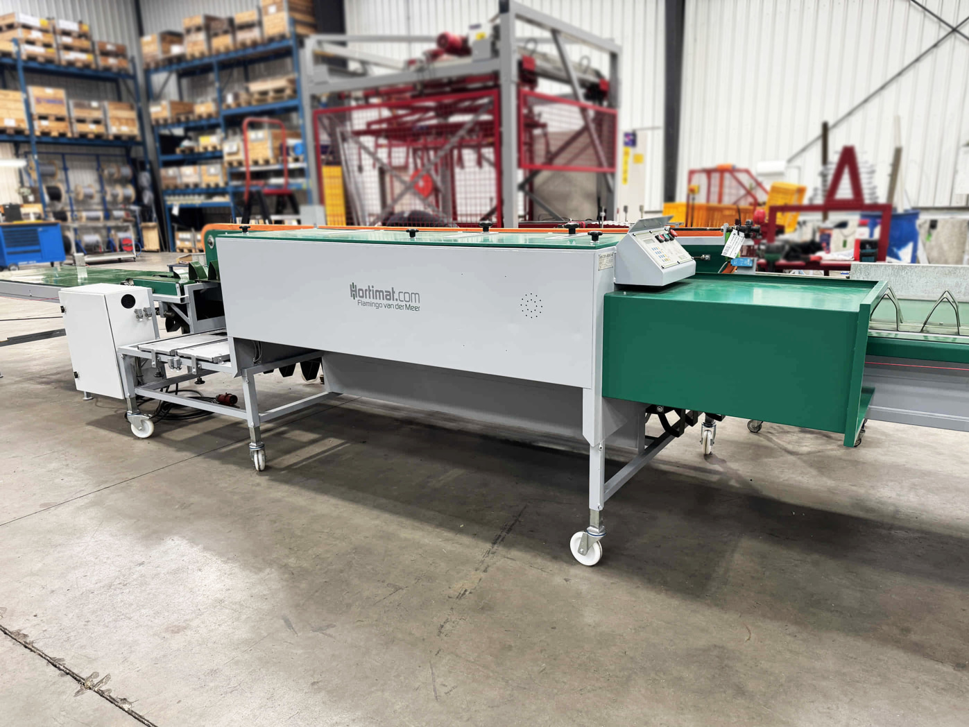 Voor een klant in Nederland heeft Hortimat deze bloemenlijn een tweede leven gekregen. De machine is volledig gedemonteerd, grondig gereinigd en opnieuw gespoten in de originele fabriekskleuren. Daarnaast zijn diverse vitale onderdelen vervangen om de betrouwbaarheid en levensduur te waarborgen.