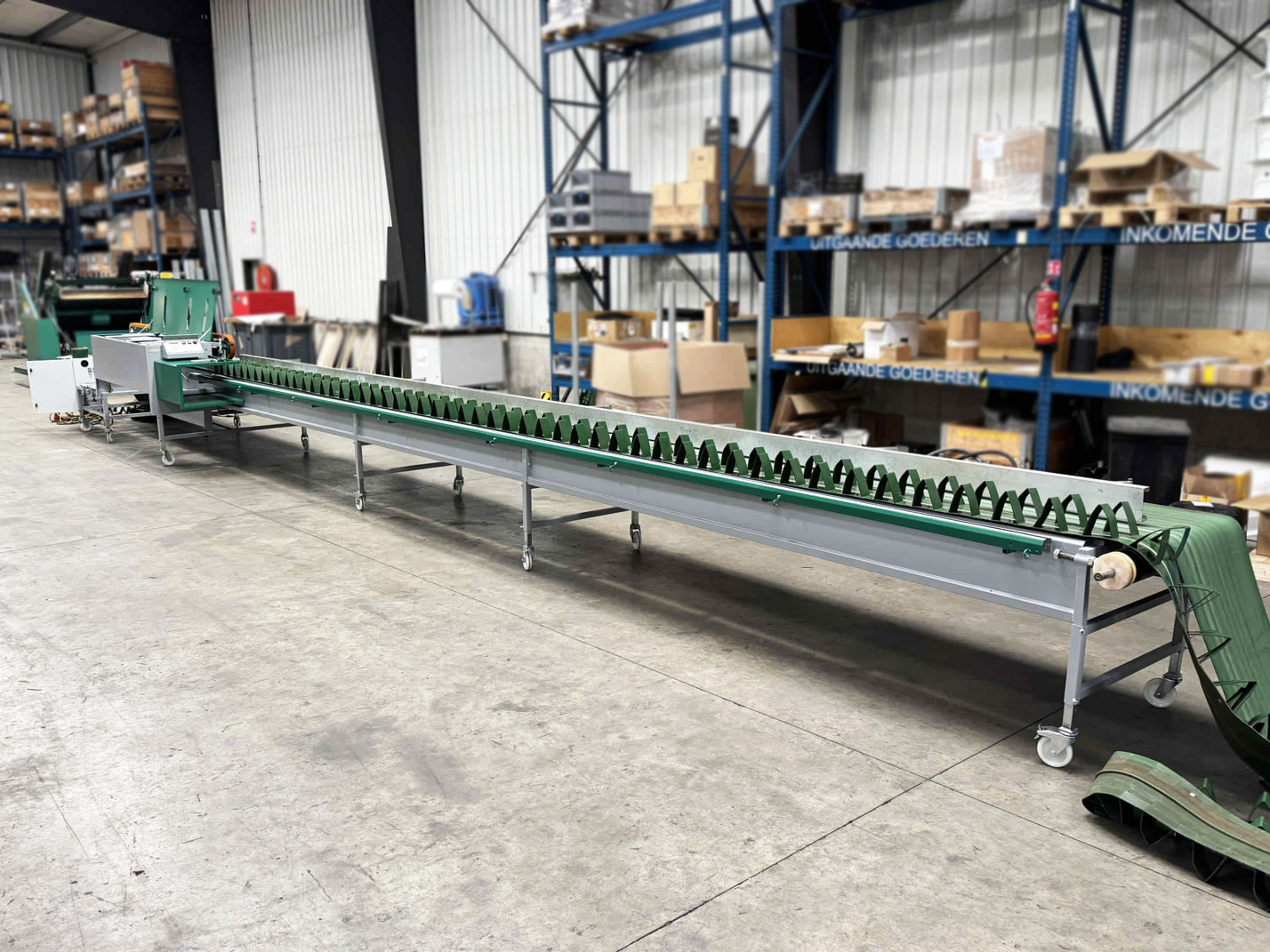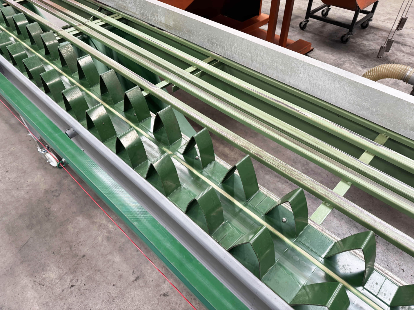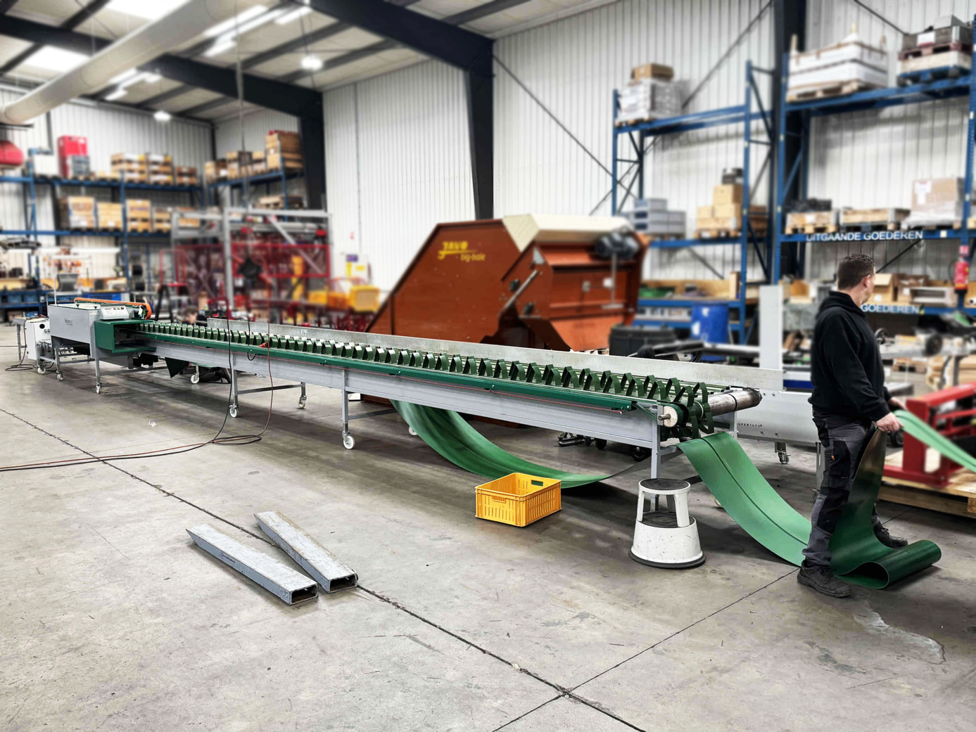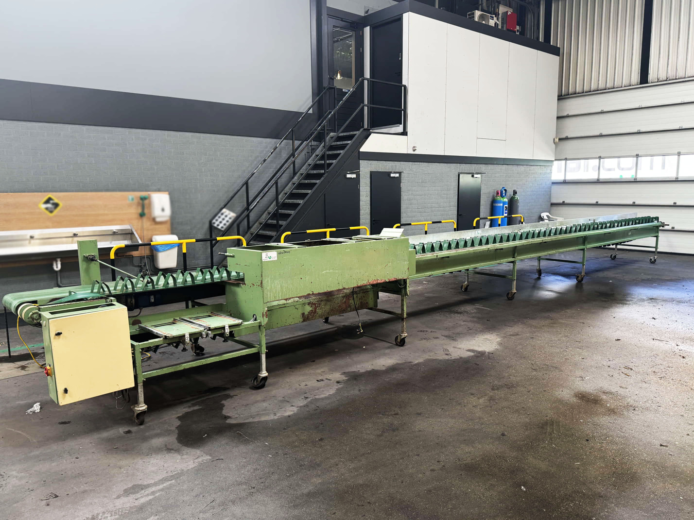Voor een klant in Nederland heeft Hortimat deze bloemenlijn een tweede leven gekregen. De machine is volledig gedemonteerd, grondig gereinigd en opnieuw gespoten in de originele fabriekskleuren. Daarnaast zijn diverse vitale onderdelen vervangen om de betrouwbaarheid en levensduur te waarborgen.