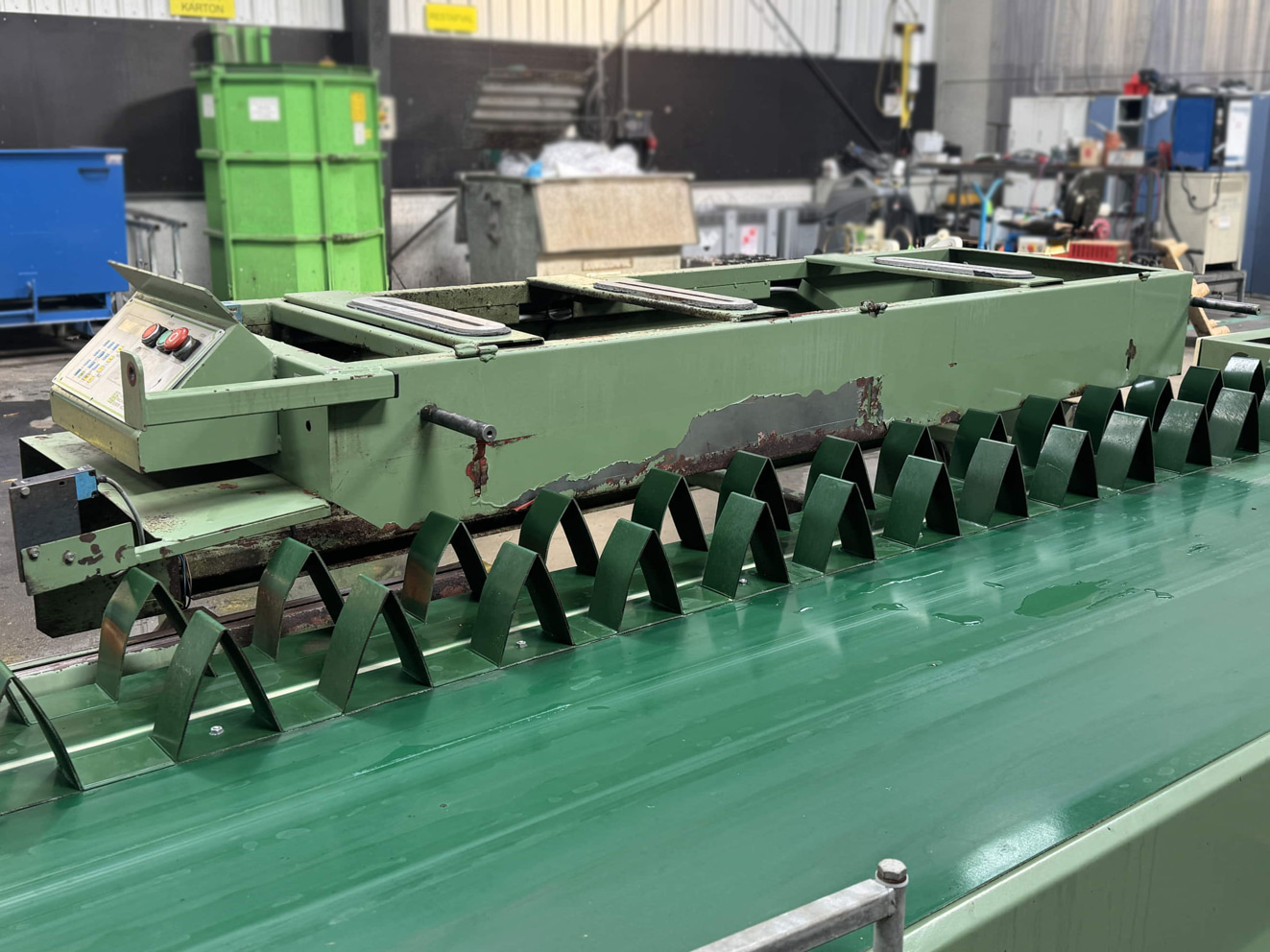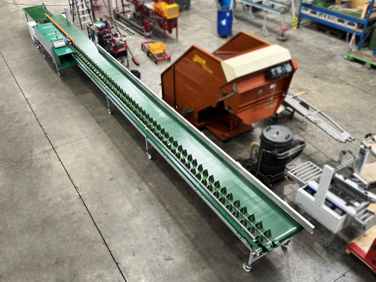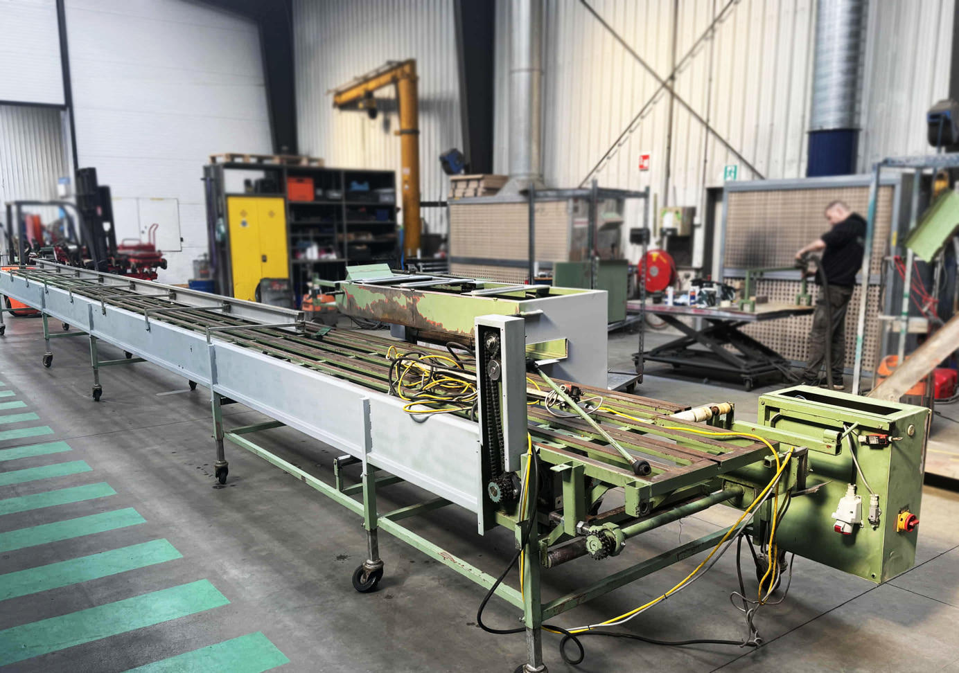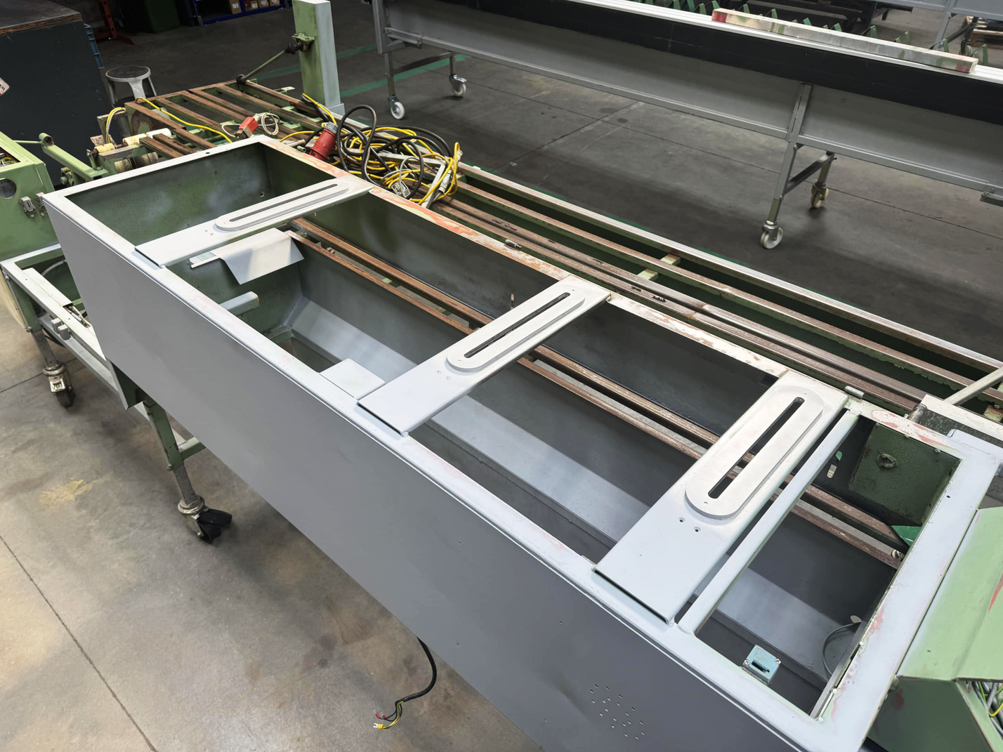 Voor een klant in Nederland heeft Hortimat deze bloemenlijn een tweede leven gekregen. De machine is volledig gedemonteerd, grondig gereinigd en opnieuw gespoten in de originele fabriekskleuren. Daarnaast zijn diverse vitale onderdelen vervangen om de betrouwbaarheid en levensduur te waarborgen.